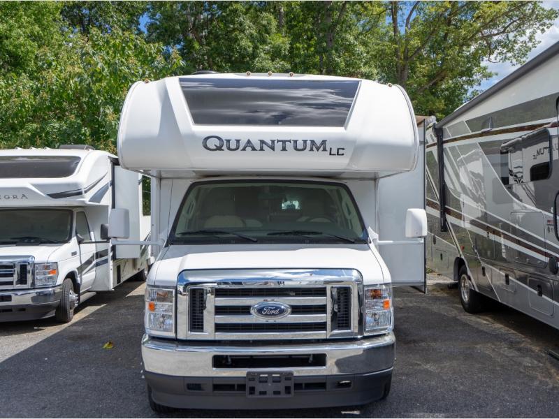 With any Quantum LC Class C gas motorhome by Thor Motor Coach, you will experience a resident-feel with comfort throughout and entertainment on board for when you return from exploring. The Luxury Collection offers flat panel Coastline Grey cabinet doors with Charcoal Diamond decor and a slick fiberglass exterior with the Standard Graphics package. You can tow your toys or a commuter vehicle with the 8,000 lb. trailer hitch, enjoy views of the sky during the day and nighttime through the fiberglass front cap with built-in skylight and power shade, and have confidence in the construction with a welded tubular aluminum roof and sidewall cage construction plus a vacuum-bond laminated roof, walls and floors with block foam insulation. Get ready for your family's best adventures, choose your favorite today!