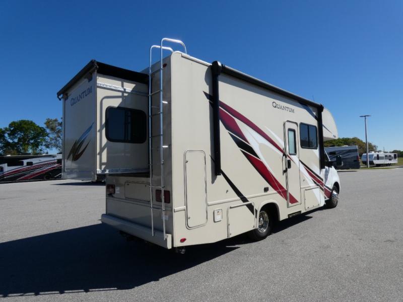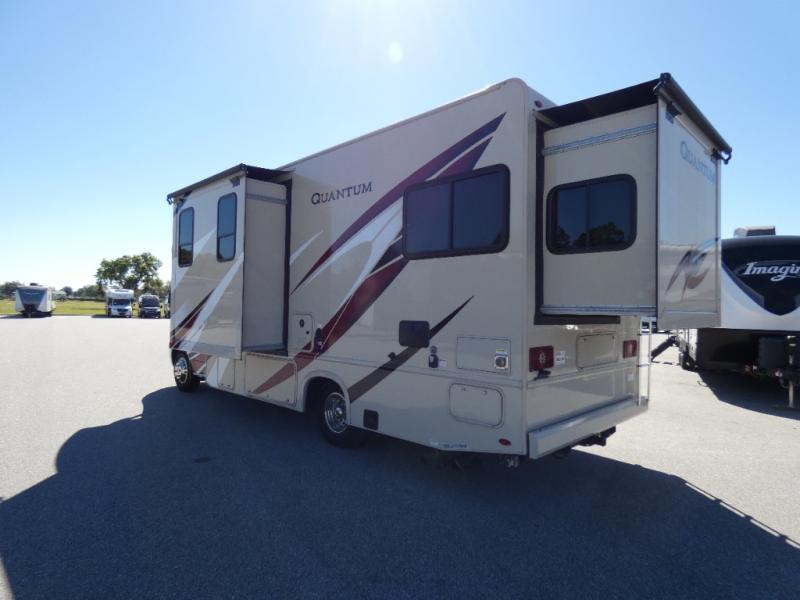 Claim the open road with a Quantum Sprinter Class C diesel motorhome by Thor Motor Coach. These models feature a durable welded tubular aluminum roof and sidewall cage construction, and a fiberglass front cap with a skylight and shade for privacy. Each model includes an electric stabilizing system for easy set-up, and a 100-watt solar charging system with a power controller that will allow you to enjoy some off-grid capabilities. Some of the other convenient amenities you are sure to appreciate are the outside shower, the tankless water heater, and the Onan RV QG 3600 LP generator. The Quantum Sprinter motorhomes feature a 7' ceiling height, residential vinyl flooring, solid surface countertops in the kitchen, plus many more interior comforts you won't want to leave home without!