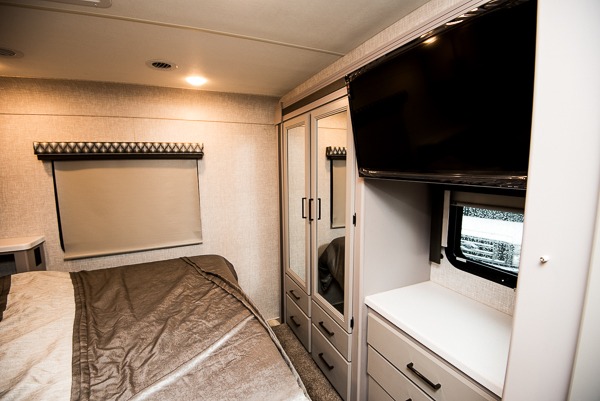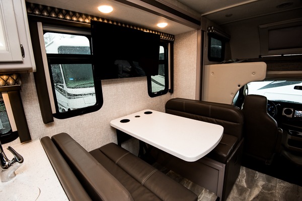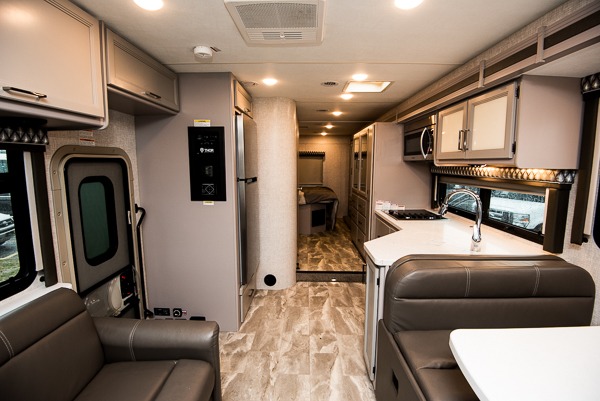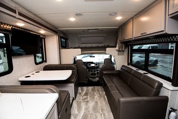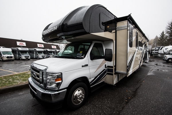 With any Quantum Class C gas motorhome, the construction includes a welded tubular steel floor, a welded tubular aluminum roof and sidewall cage construction, premium one-piece exterior roofing, plus frameless slider windows. The interior offers decorative glass inserts in the kitchen overhead cabinet doors and kitchen accent countertop lights for the style, full extension metal ball-bearing drawer guides, plus a 7-inch touchscreen dash radio with Google Android Auto-Apple CarPlay with a back-up monitor the driver will appreciate. The Diamond package is included and provides black frameless windows, a 30-inch over-the-range convection microwave oven, and SmoothTECH ride suspension by Mor-Ryde. No more dreaming, you can choose your favorite Quantum and start your RVing lifestyle!