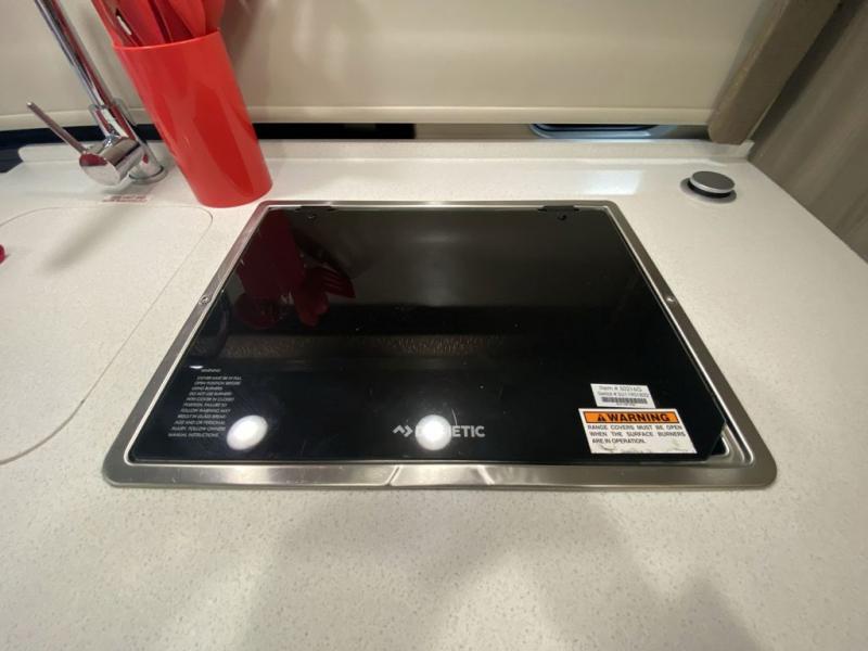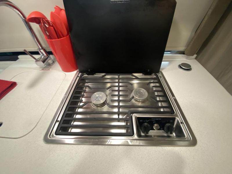 If you want to tour the country while working on the road, you must check out this Tellaro Class B gas motorhome! Whether it's for business or pleasure, this Tellaro is equipped to help you make the most of your off-grid adventures. It has a flip-up countertop located behind the passenger swivel cab seat, so you can use this space as a work desk. It can also serve as an additional dining location if needed. There is a removable table on a swing arm in between the cab seats and the expanding sleeper sofa, so you have a second place to dine with friends. You'll also find it quite easy to prepare meals because the kitchen has a convection microwave, two-burner gas cooktop, and a single-door stainless refrigerator.