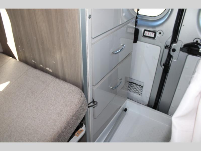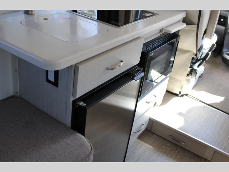 This Tellaro Class B gas motorhome has a very helpful kitchen with a pull-out cutting board, a flip-up countertop, and a convection microwave! All of these added to the standard kitchen features will make you look forward to preparing meals. There are removable sofa tables in front of two twin beds, and you can combine these two beds together to create one large 74" x 80" bed. There are pocket doors at the wet bath's entrance to utilize space well, and inside the bathroom you will find a wardrobe and drawers to keep your linens and toiletries safely hidden away. Once you're done adventuring for the day, you can sit back, rest, and enjoy a show on the 24" TV with outdoor viewing capability.