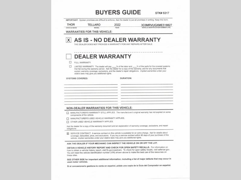 Used 2022 Thor Motor Coach Tellaro 20L Motor Home Class B