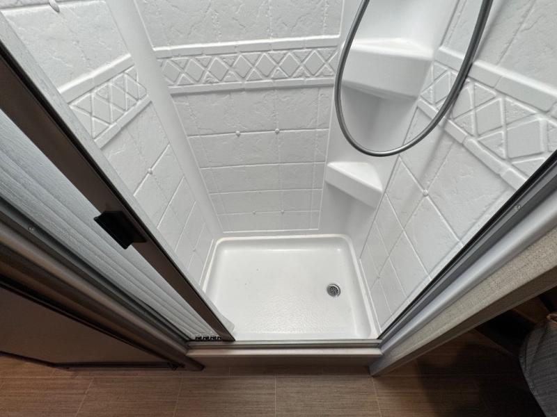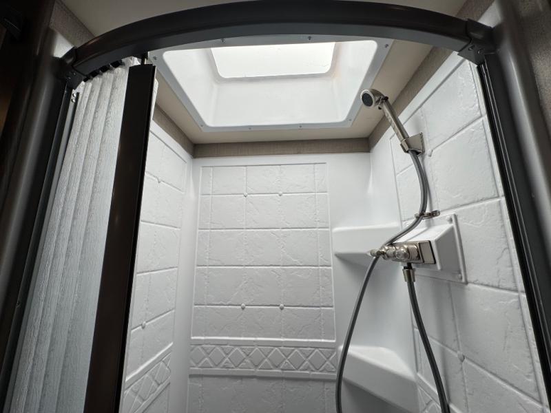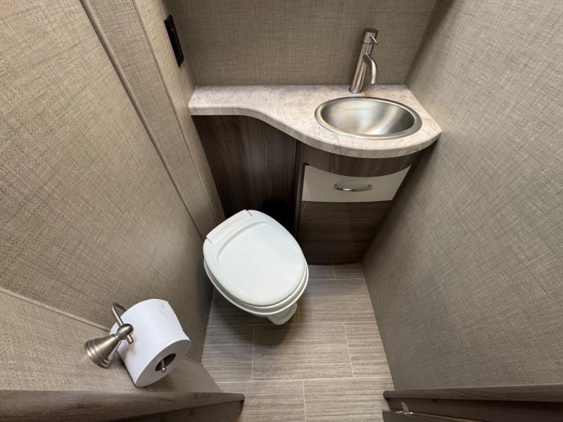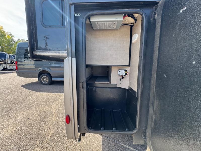 Whatever you want to do and wherever you want to go, take this Tiburon Sprinter Class C diesel motorhome with you! It will offer you a high level of comfort and an exceptional amount of convenience with its many unique additions, like the wall cubby with net and USB charging port, the telescoping ladder for the bunk above the cab, the countertop extension in the kitchen, the power charging center for electronics, and the whole-coach water filtration system. Sit back and relax on the theater seating with footrests and the 68.5" dinette, and enjoy some entertainment from the 39" LED TV. The separated bathroom has the toilet and vanity on one side of the coach and the 24" x 32" shower on the other, and the private bedroom has a flip-up bed with cushioned seating underneath.