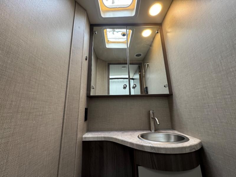 You will be well on your way to unforgettable journeys when you purchase the Thor Motor Coach Tiburon Sprinter Class C diesel motorhome and add it to your line-up! What makes the Tiburon Sprinter so special are the elegant and stunning interiors combined with the eye-catching exterior and powerful Mercedes-Benz Sprinter chassis with 3.0L V6 188HP engine. You will stay safe as you travel because the Mercedes-Benz safety package includes active braking assist, attention assist, active lane keeping assist, a wet wiper system, and a distance regulator distronic plus. As you tackle each adventure, you'll enjoy the cockpit features that allow you to enjoy traveling, like the Mercedes-Benz multimedia dash radio with Bluetooth®, navigation, and SiriusXM® and the rearview mirror with back-up system. And don't overlook the electrical and plumbing features! You will be impressed by the wireless phone charger, Winegard® ConnecT™ 2.0 Wi-Fi/4G/TV antenna, tankless water heater, and 100W solar charging system with power controller.