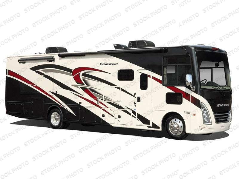 There are all sorts of adventures to be had with the Thor Motor Coach Windsport Class A gas motorhome! Built on a Ford F-53 chassis, the Windsport will gather lots of attention with its HD-MAX® exterior with graphics package. It also offers you a basement pass-through storage and a Pet-Link™ multi-purpose tie-down. The Bird's Eye™ window is so easy to see through in the cockpit, and there are reclining/swivel leatherette captain's chairs to relax in while you travel. The Winegard® ConnecT™ Wi-Fi extender +4G will allow you to post on your social media or send an email from the cockpit's dash work station, and the Rapid Camp+® multiplex wiring control system with Bluetooth and 7" touchscreen will allow you to control and monitor the various electrical systems on your coach.