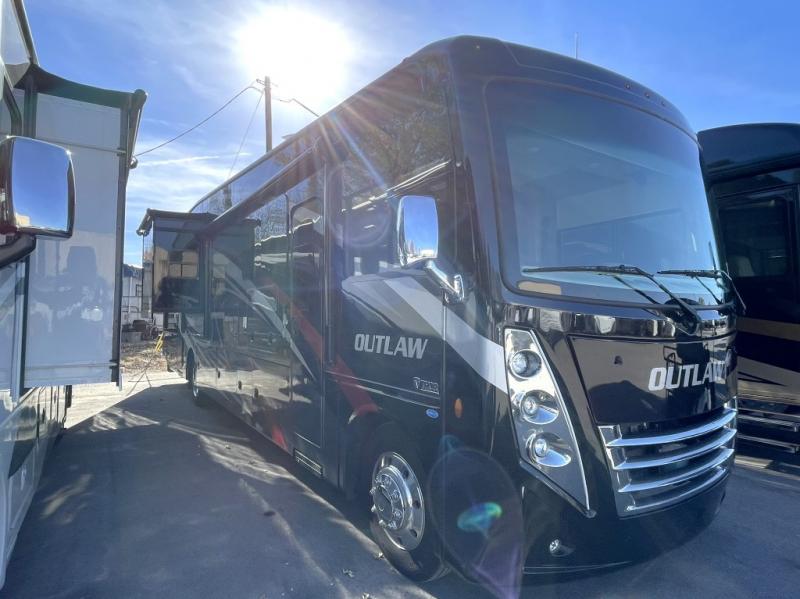 Ready for the ultimate adventure machine? The Thor Motor Coach Outlaw 38MB is not just a motorhome – it is a luxury Class A gas toy hauler built for serious fun and total comfort. Whether you are bringing your side by side, dirt bikes, or outdoor gear, this RV is ready to haul it all and keep you living in style.