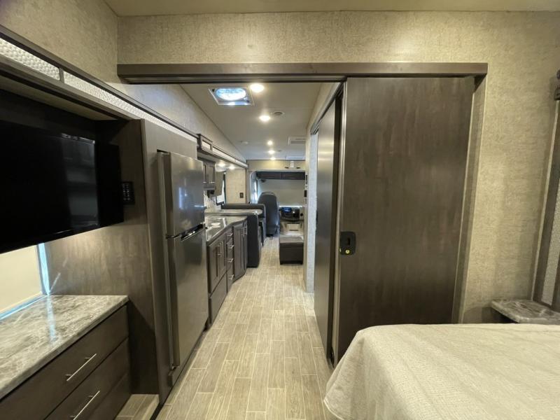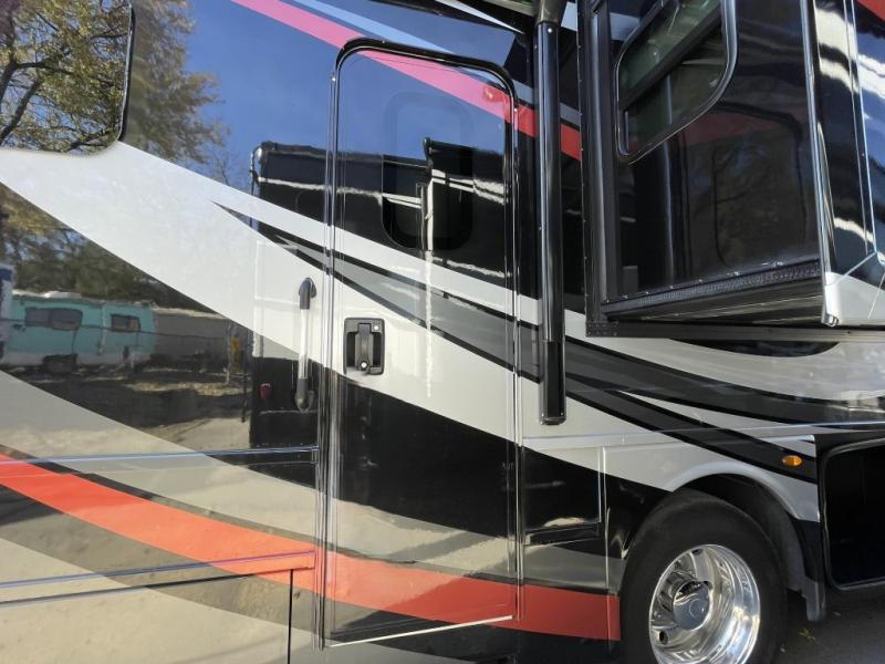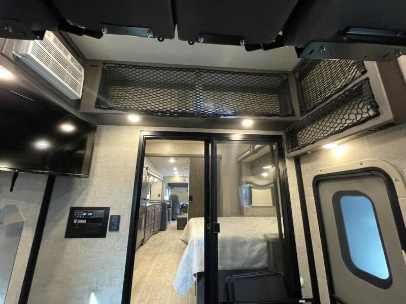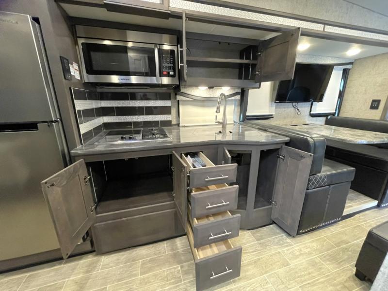 This Class A gas toy hauler delivers the freedom to explore with the comforts of home and the space to bring your toys along for the ride.
