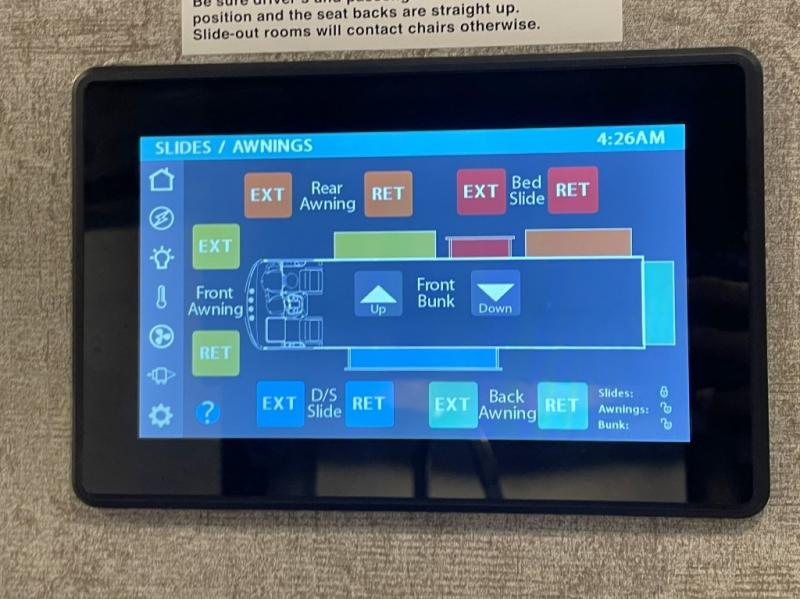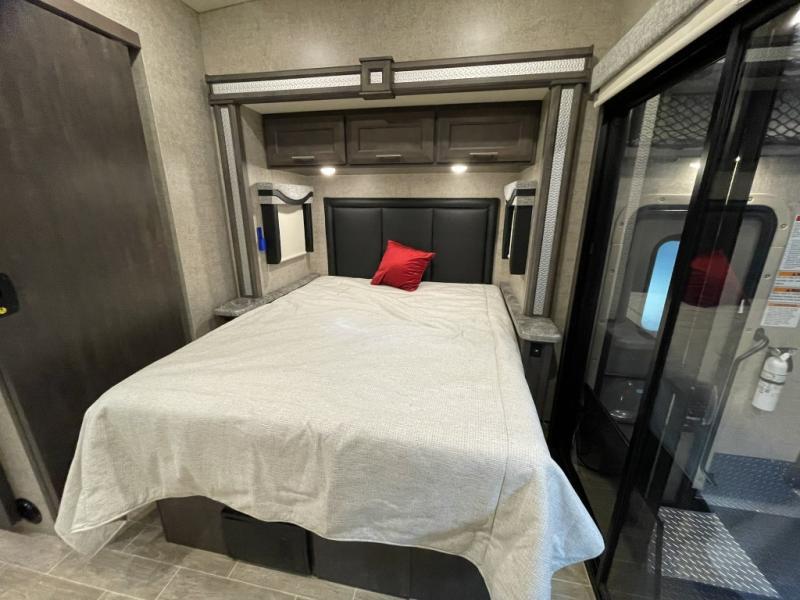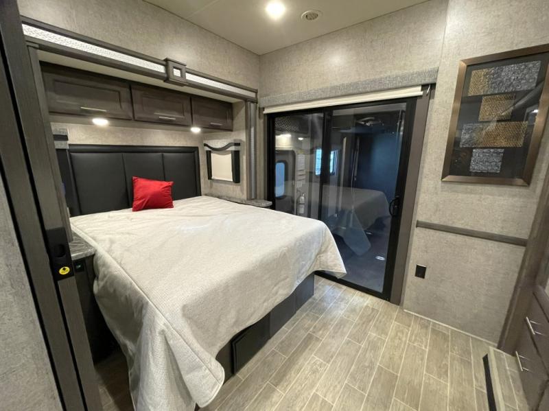 This versatile Class A coach transforms wherever you park it. Relax in the garage by day and convert it into a bedroom by night. Unwind on the patio deck with friends or chill indoors with your favorite show. With seating, sleeping, and entertainment for the whole crew, every trip becomes an event.
