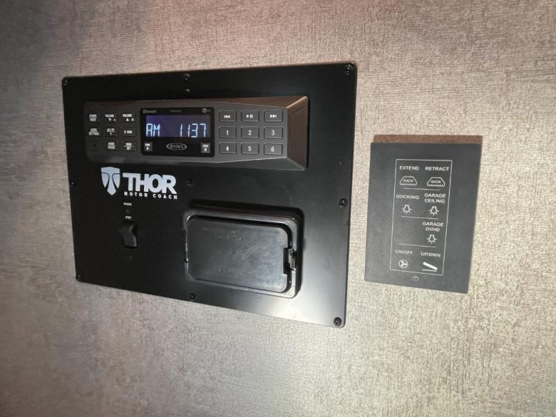 The Thor Outlaw 38MB is engineered for performance with a powerful Onan RV QG 5500 gas generator, four house batteries, and a 100 watt solar charging system. A remote fuel filling station with auxiliary tank and pump keeps your toys running without needing to leave camp.