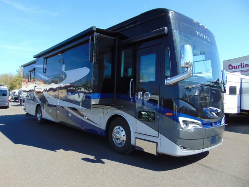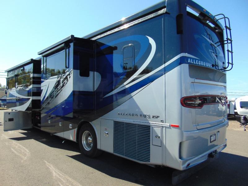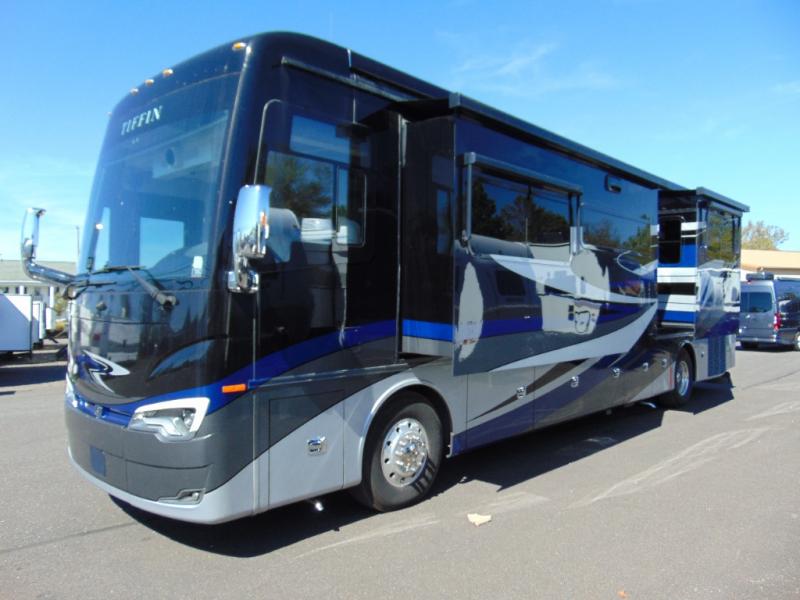 With any Allegro Bus Class A diesel coaches by Tiffin Motorhomes you will experience ultimate luxury, breakthrough technology, and unmatched power thanks to the 450 HP Cummins L9 engine. Each model sits upon a PowerGlide XSP elevated rail chassis for a smooth ride, and you are sure to turn heads with the premium paint system. The captain's job is made easier than ever with the adaptive cruise control, the VIP Smart Wheel with integrated controls, and the digital dashboard with integrated leveling controls. This all-electric coach features an integrated roof-mounted Girard patio awning, an Onan 10.0 kW generator, and a hydronic heating system to name a few amenities. Inside, you'll love the polished solid surface countertops, the upscale appliances, and the Ultraleather furniture for all-around comfort.