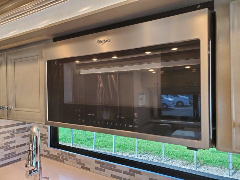This Phaeton motorhome is built on a Freightliner XCR XSH with an optional PowerGlide chassis for a smooth ride! You will feel right at home in the master suite with the queen bed slide, the flat panel TV with a hamper below, and access to the full rear bathroom. The bathroom not only has a dual sink vanity with a tri-view mirror for two to get ready at once, but also a shower with a seat and a large closet with an area next to it prepped to add an optional washer and dryer. The chef can prepare their best meals either indoors with the countertop extension and cooktop with convection microwave or outside if you add the optional outdoor grill. You can even watch the big game outside with the exterior flat panel TV with sound bar!
