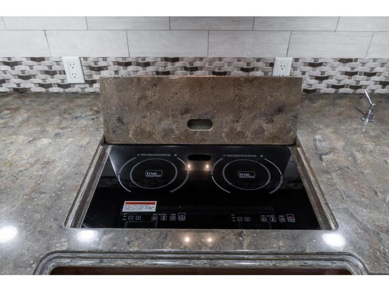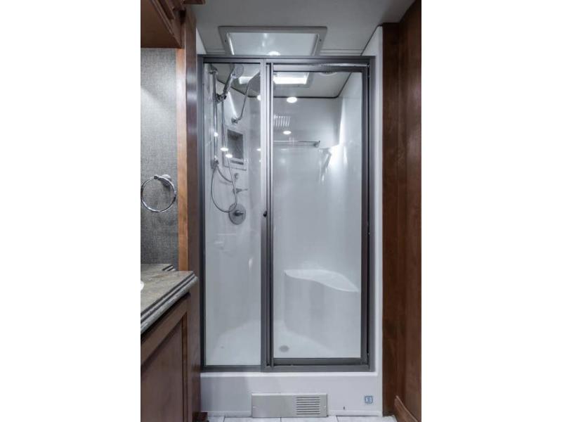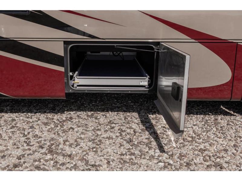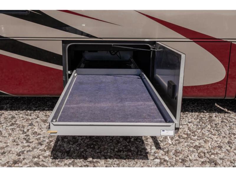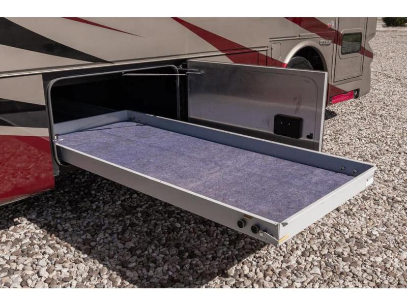 This Phaeton motorhome is built on a Freightliner XCR XSH with an optional PowerGlide chassis for a smooth ride! You will feel right at home in the master suite with the queen bed slide, the flat panel TV with a hamper below, and access to the full rear bathroom. The bathroom not only has a dual sink vanity with a tri-view mirror for two to get ready at once, but also a shower with a seat and a large closet with an area next to it prepped to add an optional washer and dryer. The chef can prepare their best meals either indoors with the countertop extension and cooktop with convection microwave or outside if you add the optional outdoor grill. You can even watch the big game outside with the exterior flat panel TV with sound bar!