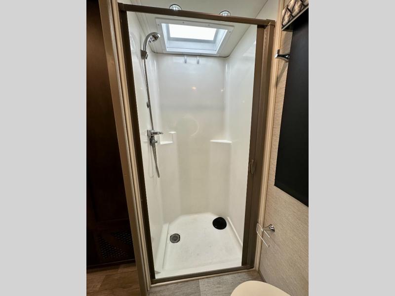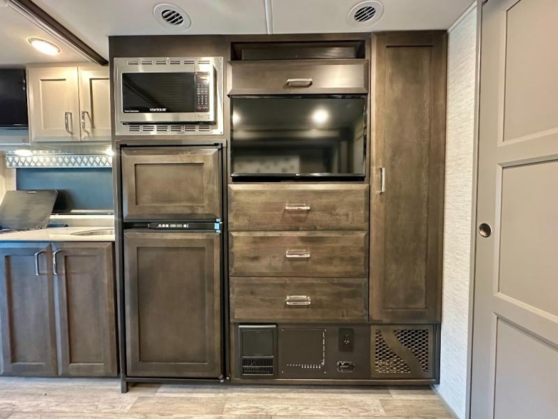 Travel with your favorite person, your family or a some friends to see nature along the highways, up close and where ever the road takes you! You will find sleeping space for five with the bunk over the cab, the booth dinette and the versatile queen Murphy bed and sofa combo! You can watch the 32" TV while the cook makes dinner using the convection microwave or cooktop, and the 12V 6.5 cu. ft. refrigerator can hold the cold items. The rear full bathroom gives you privacy and the sliding door saves space. You might like to add a few options to customize your coach such as optional reclining theater seating or a tri-fold sofa in place of the dinette, a central vacuum system, an overhead entertainment center in place of the bunk, and/or an exterior TV to enjoy under the awning.