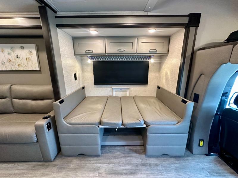 With each Wayfarer Class C diesel motorhome by Tiffin Motorhomes the Mercedes-Benz chassis delivers smooth, powerful handling with the 7G-Tronic plus 7-speed automatic transmission that helps you accelerate from a stop and conserves fuel on the highway, plus the advanced safety features. The eight-step full-body paint system features premium grade paints sealed with three layers of superclear coat with ultraviolet protection. The driver's compartment includes the MBUX multimedia system with 10.25" touchscreen, smartphone integration for Apple Carplay and Android Auto, plus black leather, heated, power adjustable driver and passenger seats. And luxurious styling and amenities, plus ample storage are found throughout. Choose the extraordinary, take a Wayfarer on the road today!