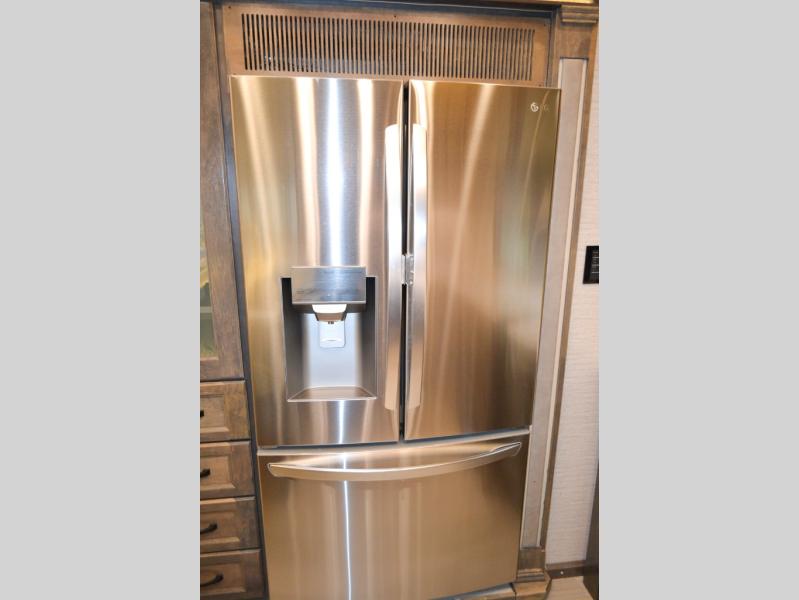 Each Beacon fifth wheel by VanLeigh RV is made with your comfort in mind. From the high-quality Franklin furniture, made in the U.S.A, to the Cool Gel Memory Foam mattress, it's easy to find luxury features at every turn. There is a galley window in each model so you will have a view of the great outdoors as you clean up, and each kitchen includes a stainless steel farm sink, a hand-built pantry to store all your items, plus an LG residential refrigerator with ice and water in the door. You will love the sleek look of the full overlay hardwood cabinetry and faceferames, the hand laid vinyl tile flooring throughout, and the hardwood ceiling decor with recessed LED lighting. Plan to travel year around with the Whisper Quiet A/C system, the 42,000 BTU furnace, and the 7,200 BTU electric fireplace, plus each model is constructed with a fully enclosed and heated underbelly with heat return. The outside of the Beacon features two patio awnings on slide boxes, an LED lighting system, plus dual exterior speakers to keep the party going day or night!