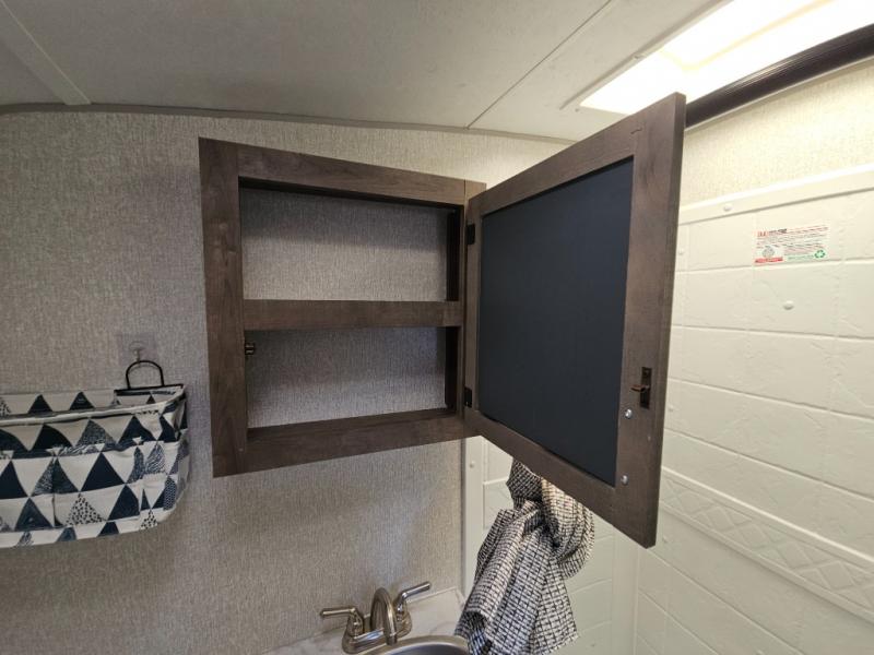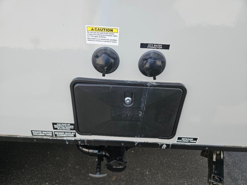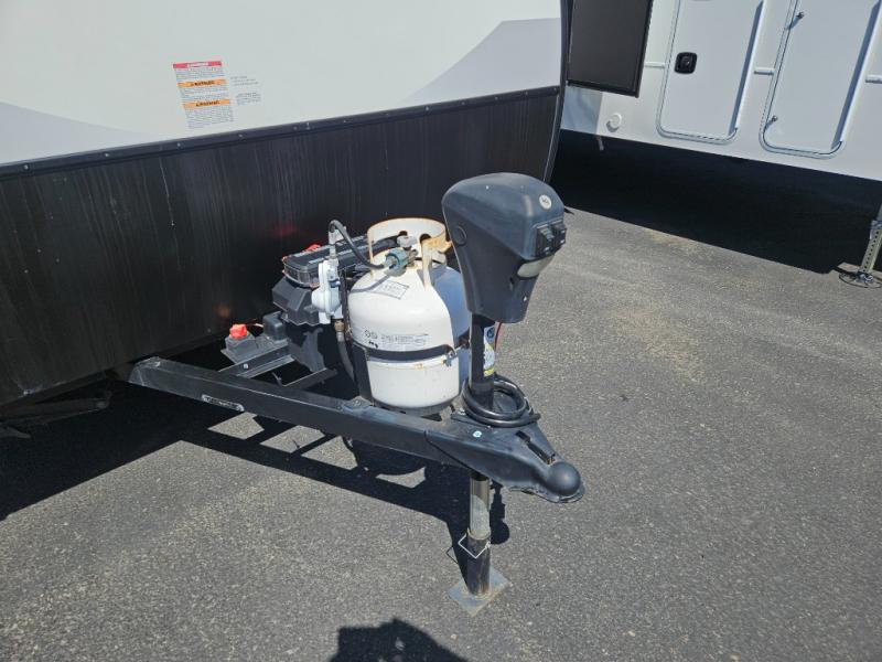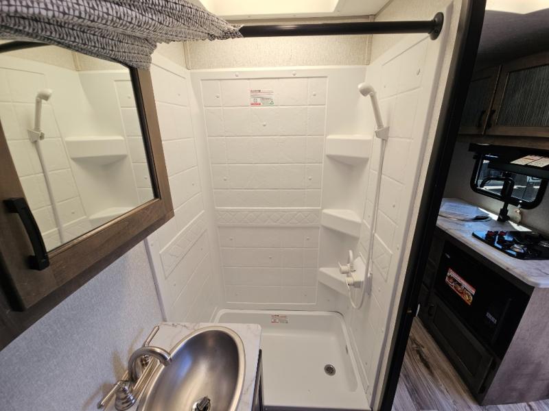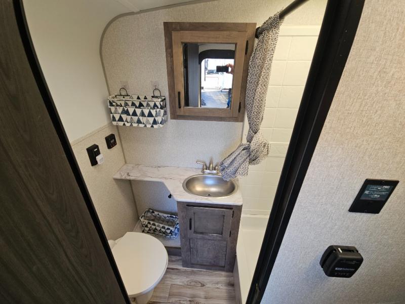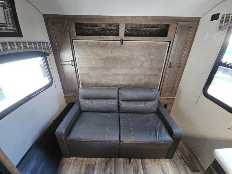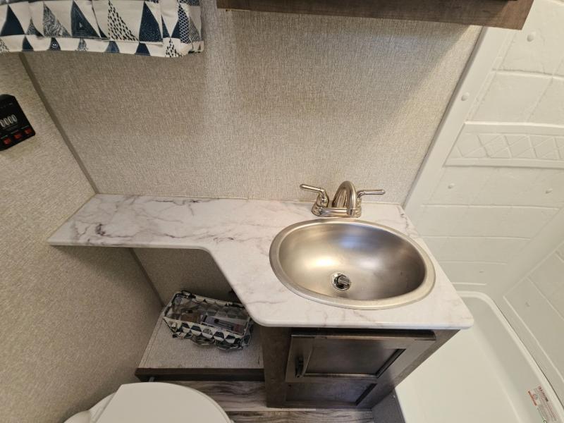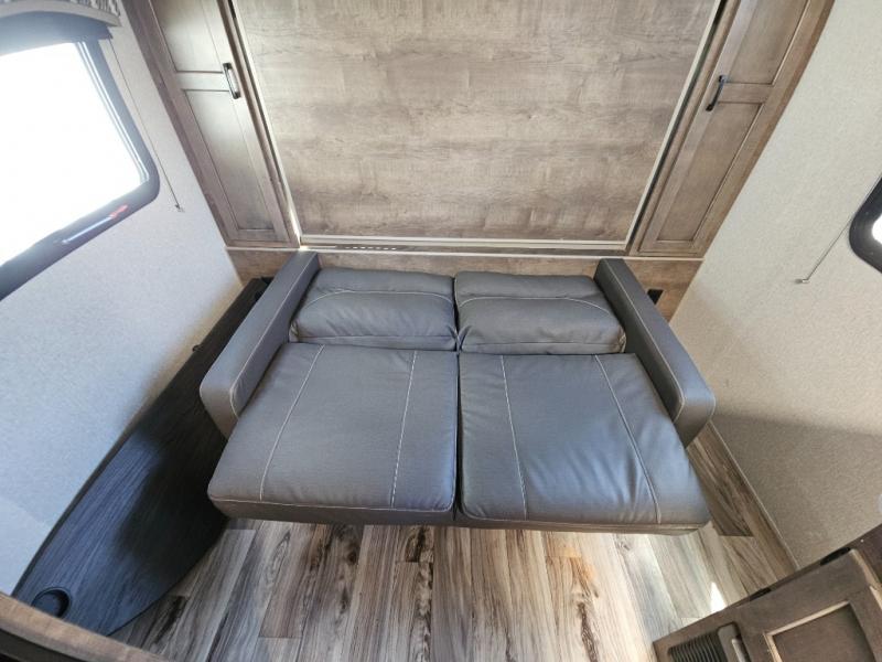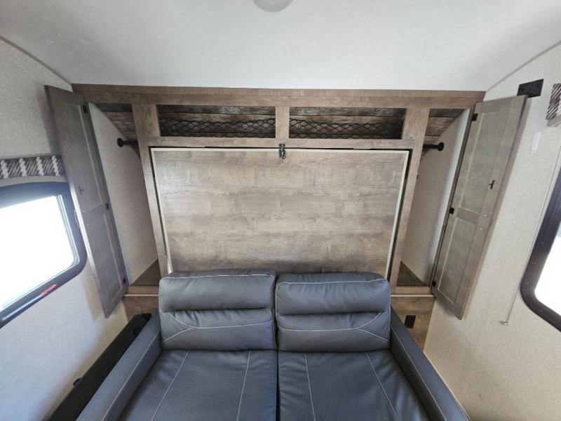 Light-weight, easy to tow and setup, and comfortable for one or two, this trailer is perfect for a couple or a person that enjoys the great outdoors with inside comforts nearby! The Murphy RV queen bed promotes versatile living by giving you a sofa to relax on during the day and a bed to sleep on at night with StorMore bedside nightstands including USB charging. The removable table is handy for dining when you are inside, plus you might decide to take it outside to relax under the 11' power awning. The full bathroom in the back corner allows you to skip the public facilities. And you will find storage throughout for clothing, dishes, and food including in the pantry/closet and the overhead cabinets, plus outside in the exterior pass-through storage area which includes a motion-activated light!