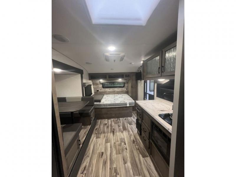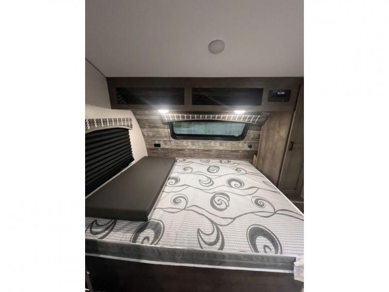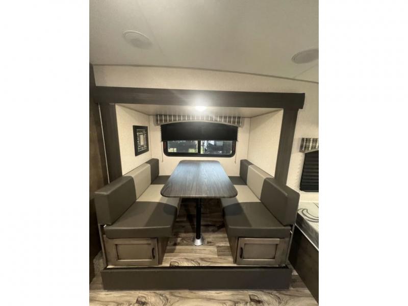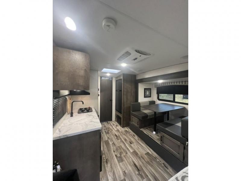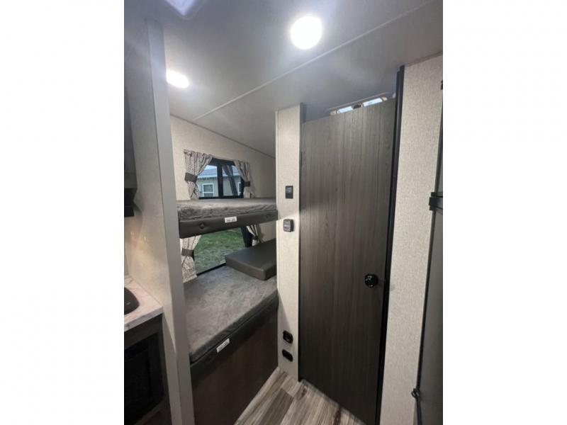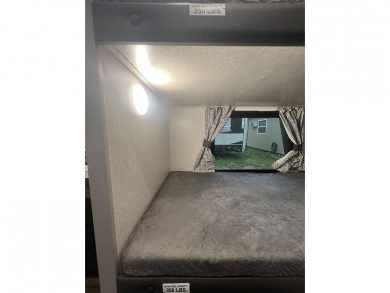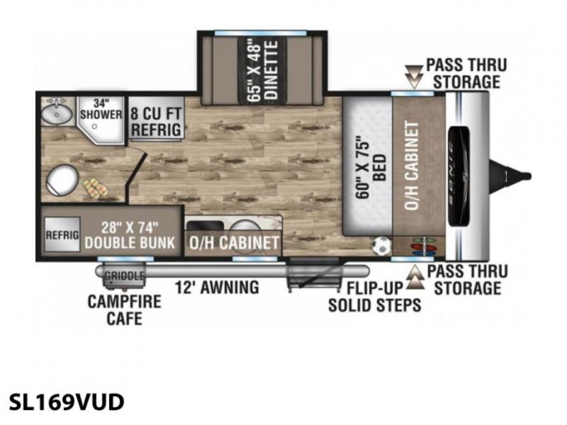 Looking for a family-friendly trailer that is easy to tow, sleeps six and includes a slide for more interior floor space? Step inside using the flip-up solid steps for safety into this Sonic Lite to find a 60" x 75" bed up front with a handy StorMore bedside nightstand with a 110V outlet and USB charging to keep your cellphones at 100%, plus an overhead cabinet for more things. You will love that the rear set of bunk beds is located next to the full bathroom which is helpful at night for the kiddos. You can make meals using the galley kitchen which includes an 8 cu. ft. refrigerator and a convection microwave or use the campfire cafe outside, and dine inside at the booth dinette or outside under the 13' power awning.