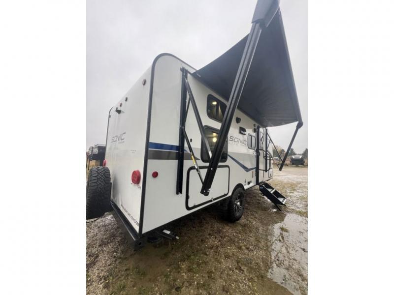 With any Sonic Lite travel trailer by Venture RV, you begin with Next Generation in RV frame technology with the NXG frame, AZDEL Onboard composite panels, tongue and groove plywood floor decking, and a tucked rear bumper. The Blast Package 1.3 provides a motion light in the bathroom, a deep round stainless steel sink with cover in the kitchen, and the Venture LevelMate Pro which allows you to use smartphone technology to level the RV, plus a lighted power tongue jack, and WIFI prep to mention a few features. Get ready for comfort and style in a Sonic Lite ultra-lightweight, single-axle travel trailer of your choice!