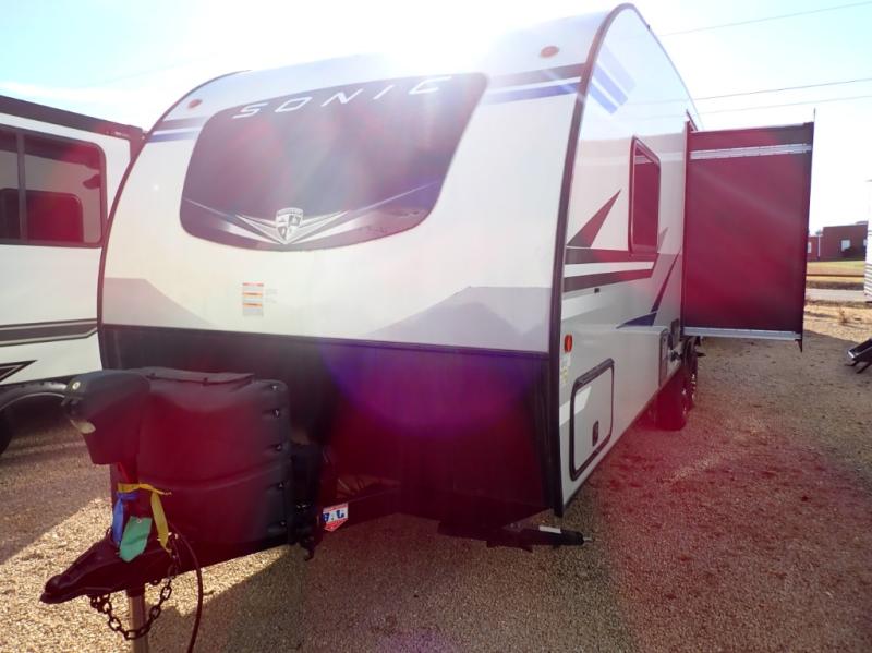 The Sonic 231VRL is a super light weight, easy to maintain camper perfect for a couple or small family. This is a rear living room floorplan with room to sleep up to 5. Private front bedroom.