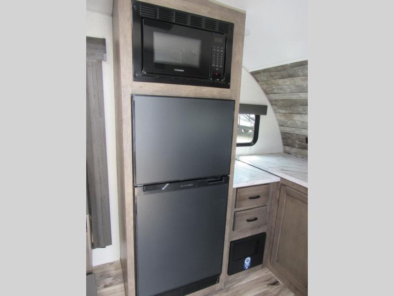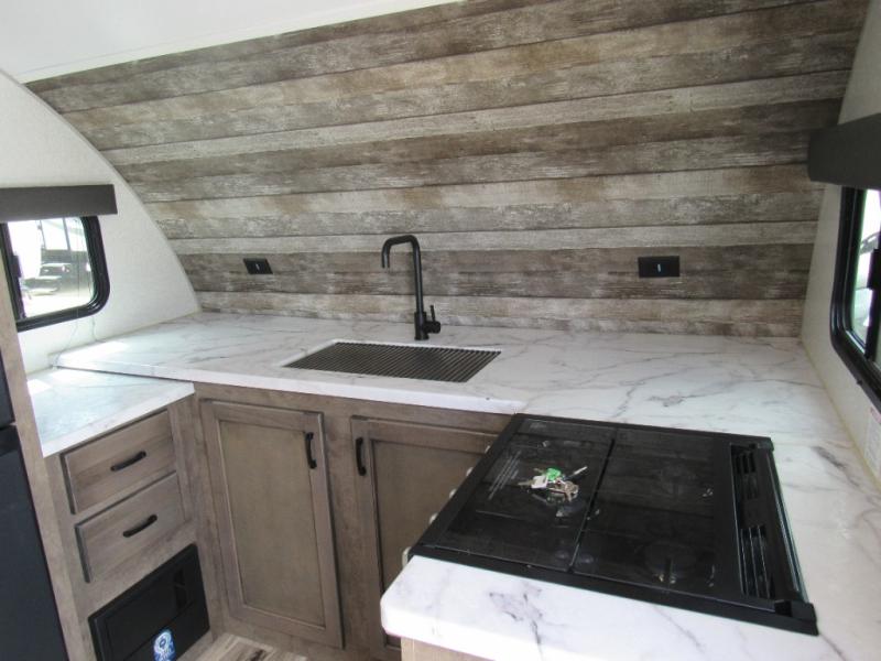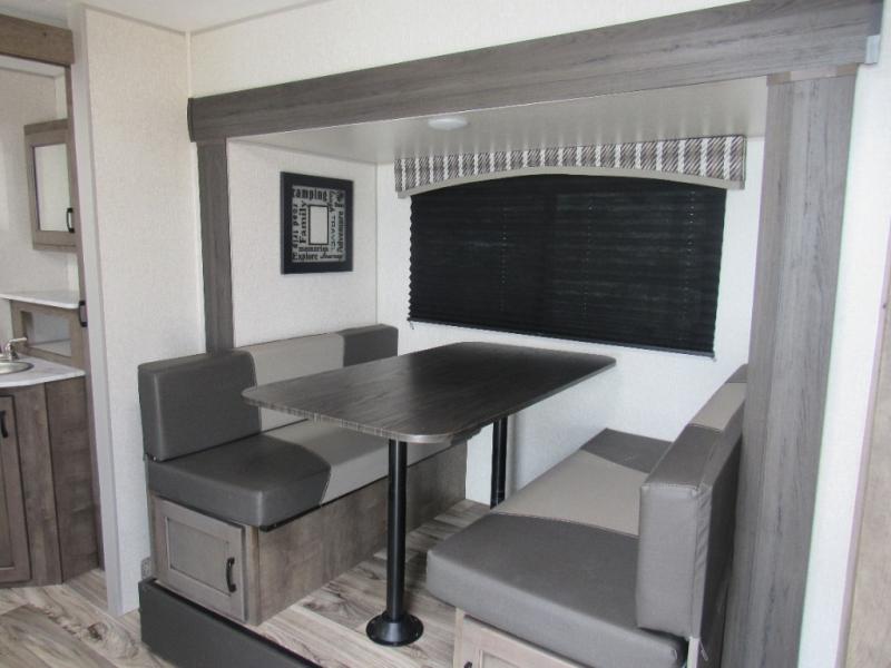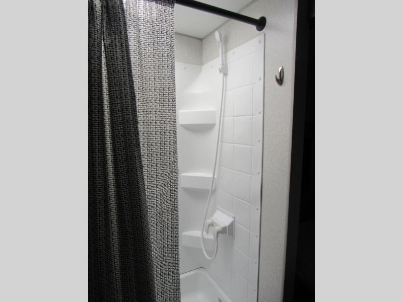 This Sonic offers a front kitchen with lots of counter space to prepare and serve meals, a large sink to easily wash the dishes, a three-burner range, an 8 cu. ft. refrigerator and a pantry to store lots of goodies, giving the cook a dream kitchen while camping! Everyone can relax on the jiffy sofa or the booth dinette slide, and both of these furnishings provide sleeping space for family and friends. The walk-through bath gives you space savings doors on each side, and everyone can take turns getting cleaned up in the 36" shower. You will have privacy in the rear bedroom while getting ready for bed, and the StorMore bedside nightstands with a 110V outlet and USB charging will come in handy to keep your battery at 100%. And the motion-activated light in the pass-through storage along the rear helps you stow away the larger camping items like chairs, tables, and fishing poles, even at night.