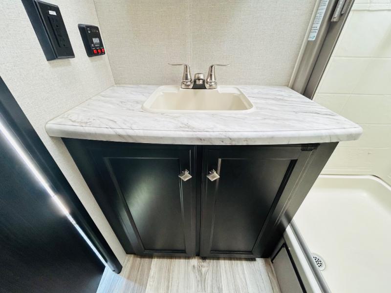 An elegant design and new features come with every one of these Venture RV SportTrek Touring Edition travel trailers! The NXG Huck bolt frame holds these units together and a walkable roof covers them. Heads will turn down the highway and at the campsite with an upgraded graphics package and a painted fiberglass front cap with integrated LED light. The exterior pass-through storage area has slam latch baggage doors with magnetic catches so you don't have to worry about them closing on you and a motion activated light to see your items clearly even at night. Luxury abounds throughout these units, especially with the mandatory Interior Luxury package which comes with washer and dryer prep (varies by model), two 30" frameless fireplaces, and Beauflor wood plank flooring that is easy to clean. Come find your favorite model today!