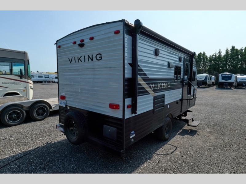 The budget-friendly Viking Saga travel trailers are for the rookie or seasoned RV camper. Each model is constructed with a Norco NXG chassis and heavy duty .030/.024 exterior metal for a trailer made to last. Towing is made hassle-free with electric brakes, Dexter E-Z lube axles, and scissor style stabilizing jacks. The Saga travel trailers include seamless countertops inside, as well as a EuroLatch entrance door, tinted safety glass windows, and ultra comfort high-density cushions for your comfort. You can also choose options to further customize your unit, such as a spare tire with a carrier, Solid Steps on the main entrance, and a "Jack It" bike rack. There is even solar prep and back-up camera prep that will make camping and towing easier than ever!