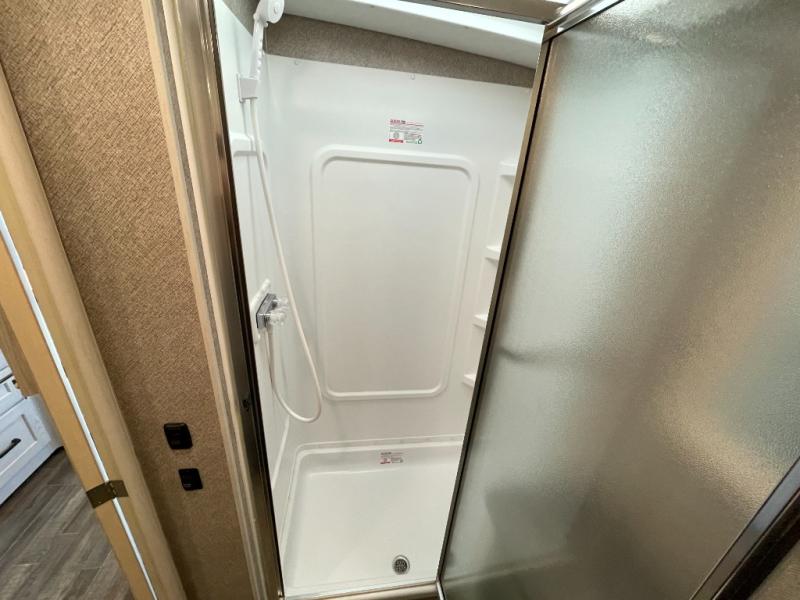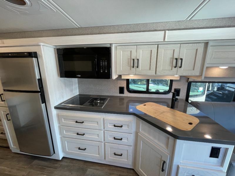 - Modern Kitchen: Cook your favorite meals on the go with a residential-style refrigerator, solid-surface countertops, and high-end appliances. Dinner under the stars just got easier.