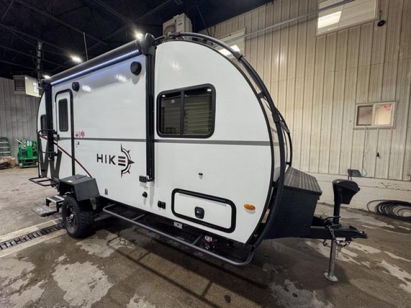 Explore more with any one of these Winnebago Industries Towables Hike travel trailers! The 15" off-road tires with Torflex Dexter axle lift make it possible for you to go beyond the beaten path. With a wireless cell phone charger and USB charging ports, you can be sure to stay connected while you are away too. The NXG engineered frame is built to withstand your greatest adventures and the exterior fiberglass with Azdel composite will help your unit last longer without rotting away. You can bring along your bikes with the exterior powder coated rack system and store any extra gear in the exterior large powder coated LP/battery/gear storage box. The power awning comes with LED lighting so you can highlight the good times at night. Come find the right model for you today!