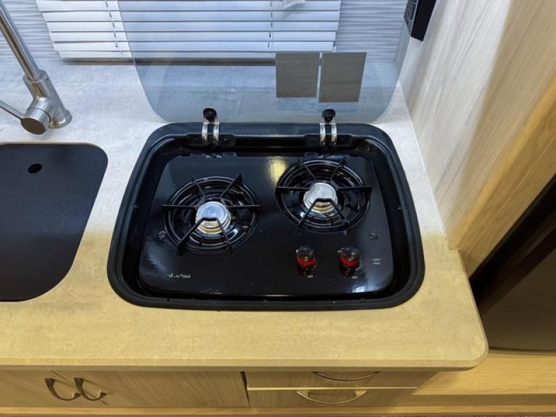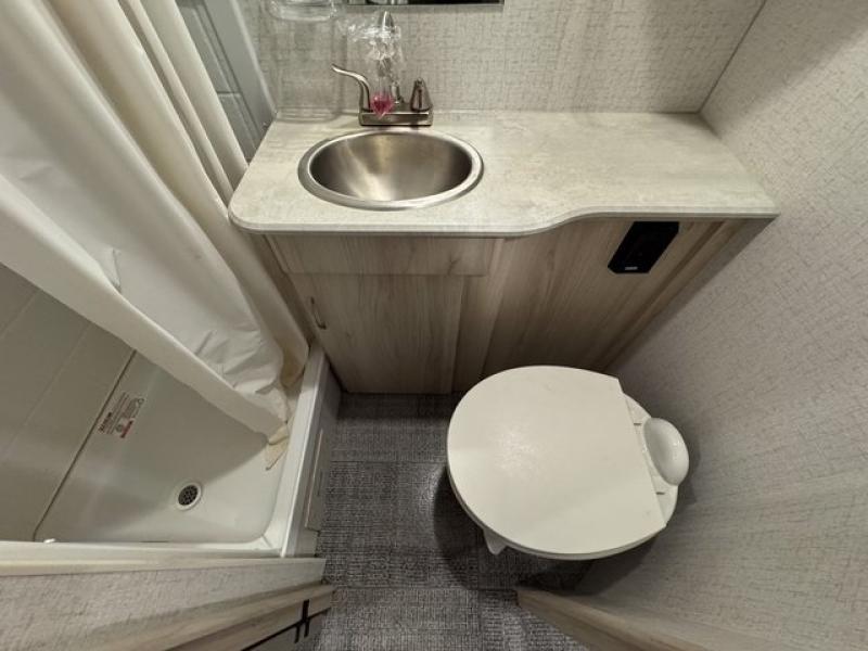 This travel trailer is perfect for two people who love going on adventures! Start your mornings feeling recharged after sleeping on the front 60" x 74" bed and head to the full bathroom to freshen up in the 24" x 32" shower. You can eat more than just cereal for breakfast thanks to the recessed two burner cooktop, the gas/electric refrigerator, and even the convection microwave. Enjoy your meals at the rear 44" x 74" U-shaped dinette while you watch the morning news with the LED TV, plus the dinette can be transformed into an extra sleeping space. There is a pantry for your favorite snacks and a wardrobe to keep your clothes out of the way!