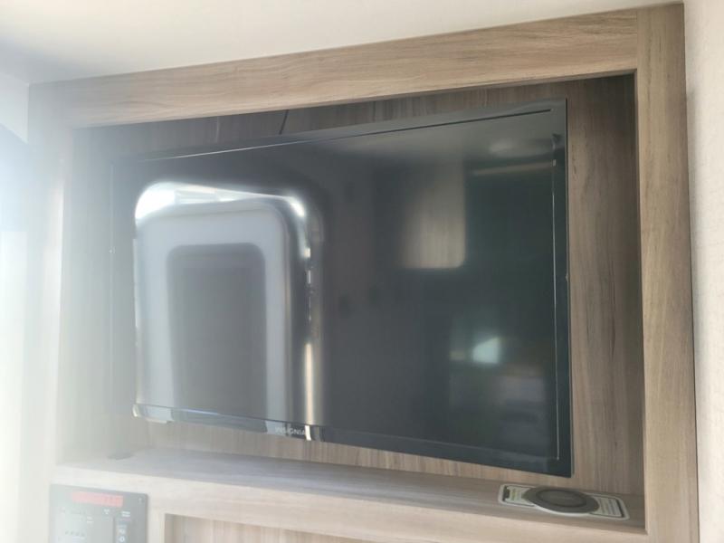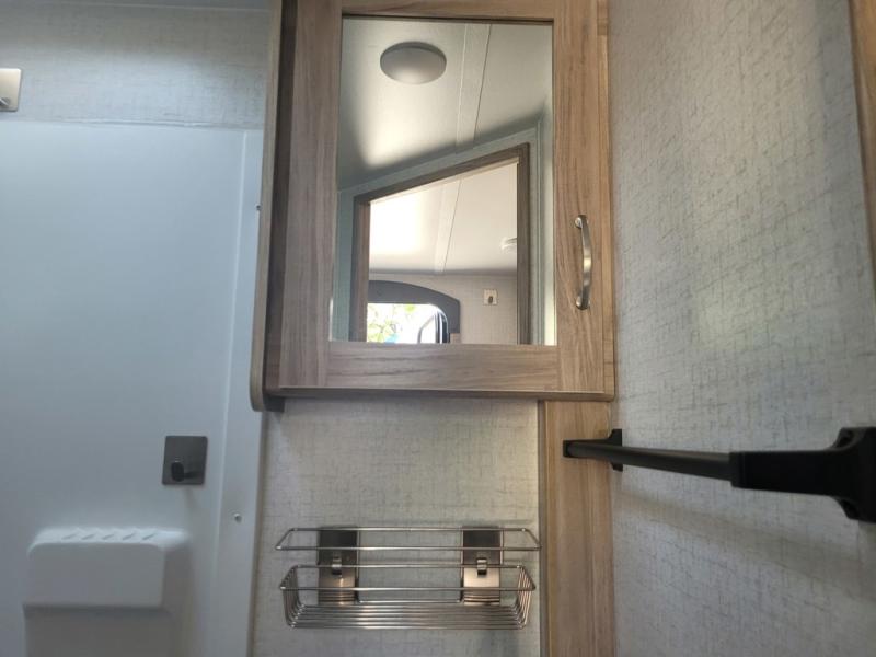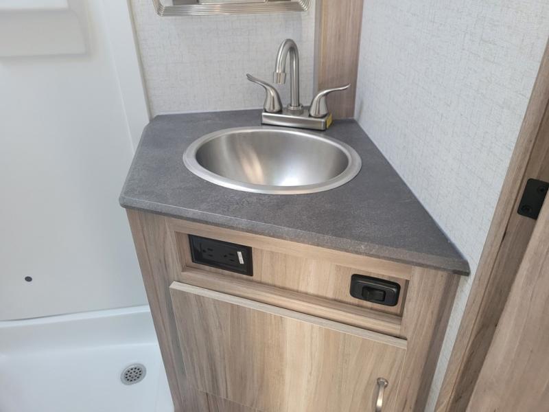 You and your spouse can head out to the best adventure with this travel trailer! Start each morning feeling refreshed after sleeping on the front RV queen bed and get ready for your day in the rear corner bathroom which features a toilet, sink, and 24" x 24" angled shower. The 32" x 74" booth dinette is not only great for eating your meals at or playing games, but it can also be transformed into an extra sleeping space for a guest. End your nights by relaxing underneath the power awning with LED lights and your favorite tunes playing through the patio speakers!