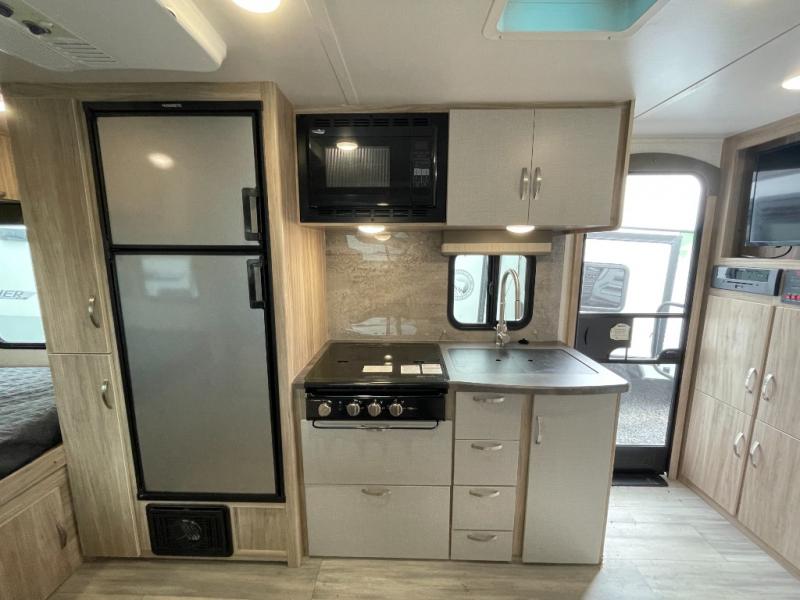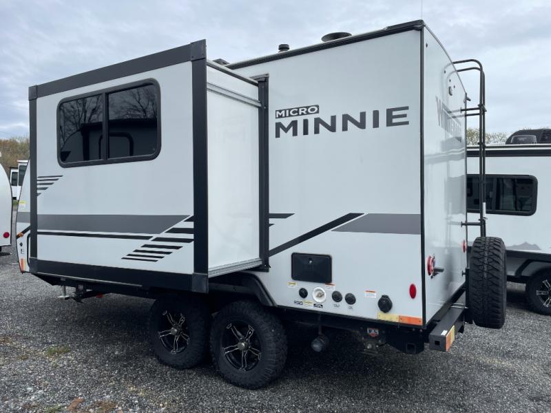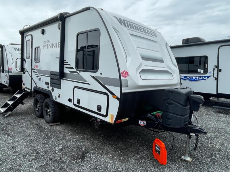 Start out on your boundless journey in one of these Winnebago Industries Towables Micro Minnie travel trailers! Towing is made simple with the 7' width to keep your Micro Minnie in your rear-view mirror. They don't lack in features either although they are compact in size. The spacious galley including a sink, refrigerator, two burner cooktop, and even a microwave oven allows you to cook without compromise. You will not only enjoy the entertainment found indoors with an LED TV, a JBL premium sound system and Aura Cube high performance mechless media center, but outdoors you will also enjoy the JBL premium speakers and a power awning with LED lighting. Each model also comes with flexible exterior storage to make packing quick and easy. What are you waiting for, come choose your model today!