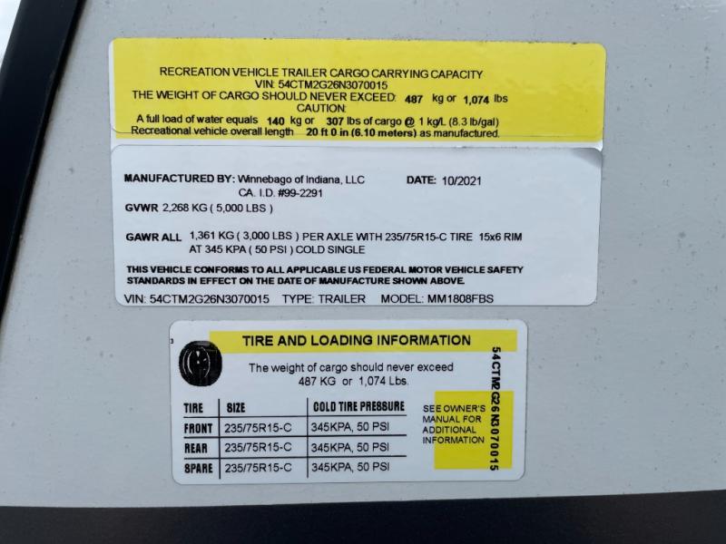 Used 2022 Winnebago Industries Towables Micro Minnie 1808FBS Travel Trailer