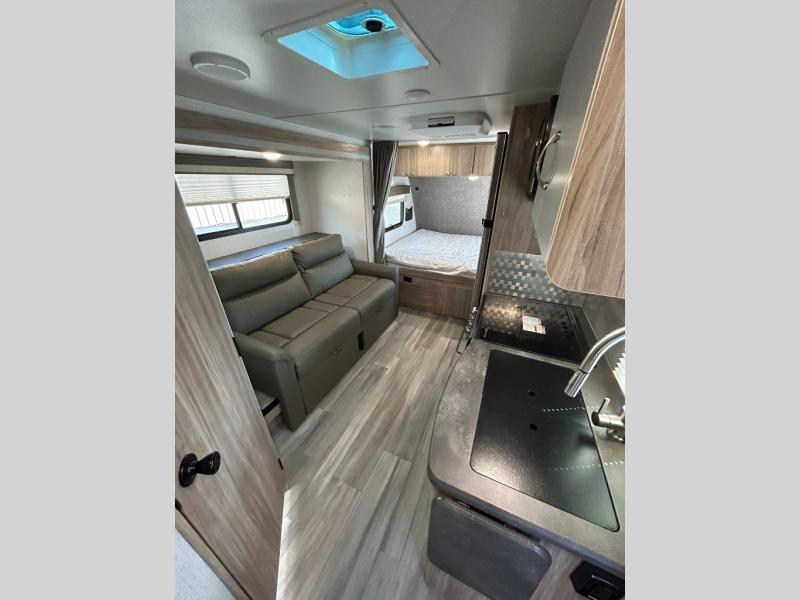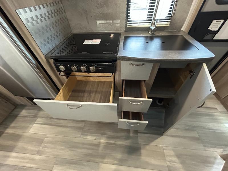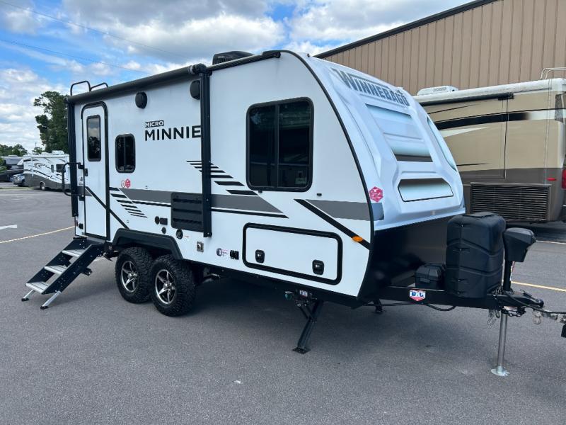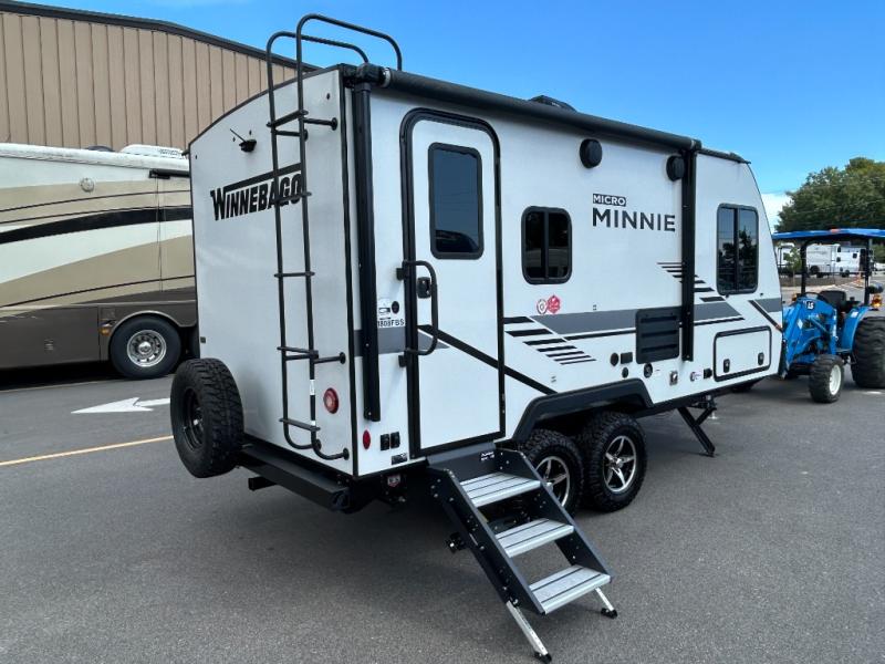 Start out on your boundless journey in one of these Winnebago Industries Towables Micro Minnie travel trailers! Towing is made simple with the 7' width to keep your Micro Minnie in your rear-view mirror. They don't lack in features either although they are compact in size. The spacious galley including a sink, refrigerator, two burner cooktop, and even a microwave oven allows you to cook without compromise. You will not only enjoy the entertainment found indoors with an LED TV, a JBL premium sound system and Aura Cube high performance mechless media center, but outdoors you will also enjoy the JBL premium speakers and a power awning with LED lighting. Each model also comes with flexible exterior storage to make packing quick and easy. What are you waiting for, come choose your model today!