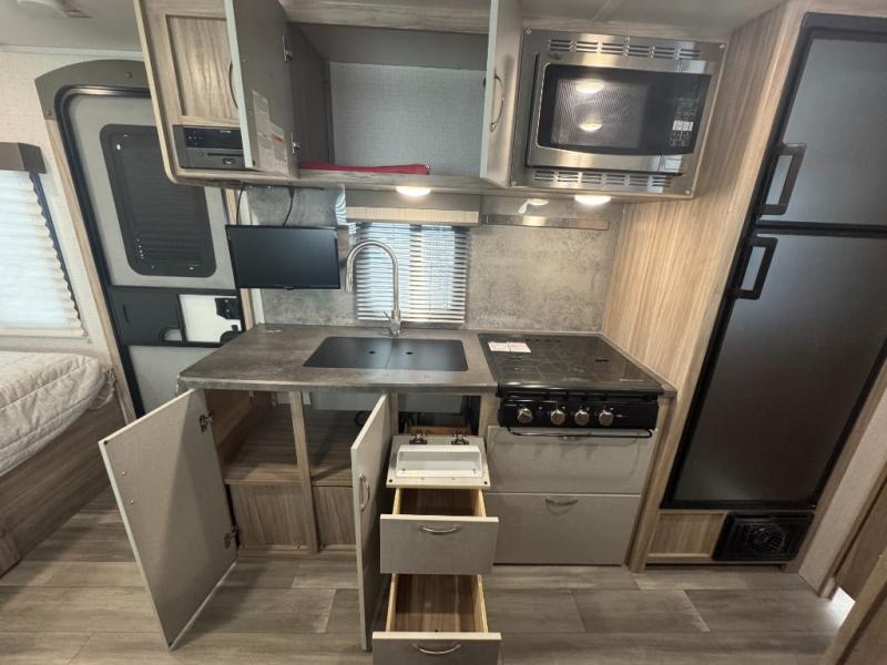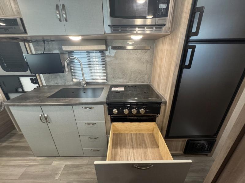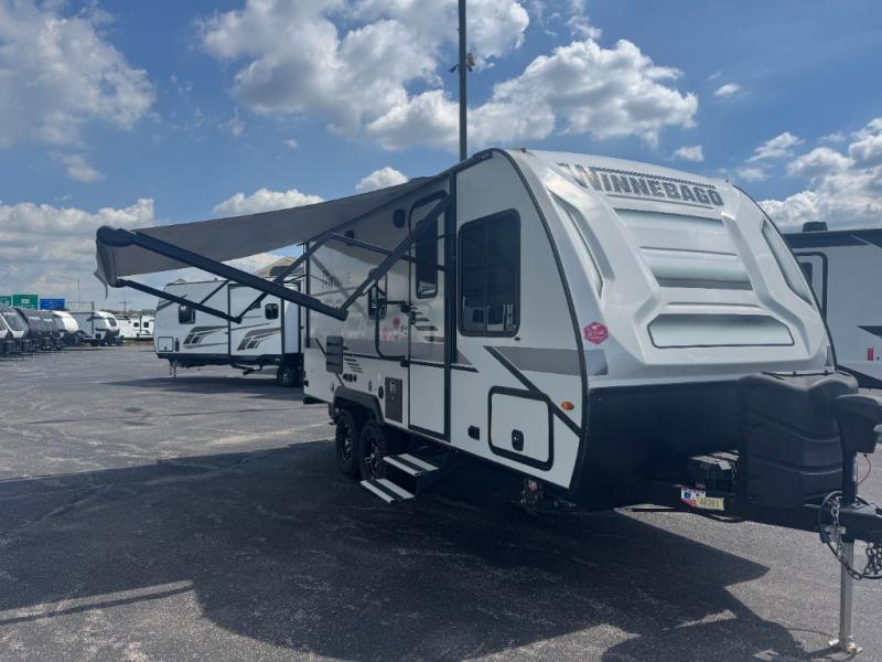 Start out on your boundless journey in one of these Winnebago Industries Towables Micro Minnie travel trailers! Towing is made simple with the 7' width to keep your Micro Minnie in your rear-view mirror. They don't lack in features either although they are compact in size. The spacious galley including a sink, refrigerator, two burner cooktop, and even a microwave oven allows you to cook without compromise. You will not only enjoy the entertainment found indoors with an LED TV, a JBL premium sound system and Aura Cube high performance mechless media center, but outdoors you will also enjoy the JBL premium speakers and a power awning with LED lighting. Each model also comes with flexible exterior storage to make packing quick and easy. What are you waiting for, come choose your model today!