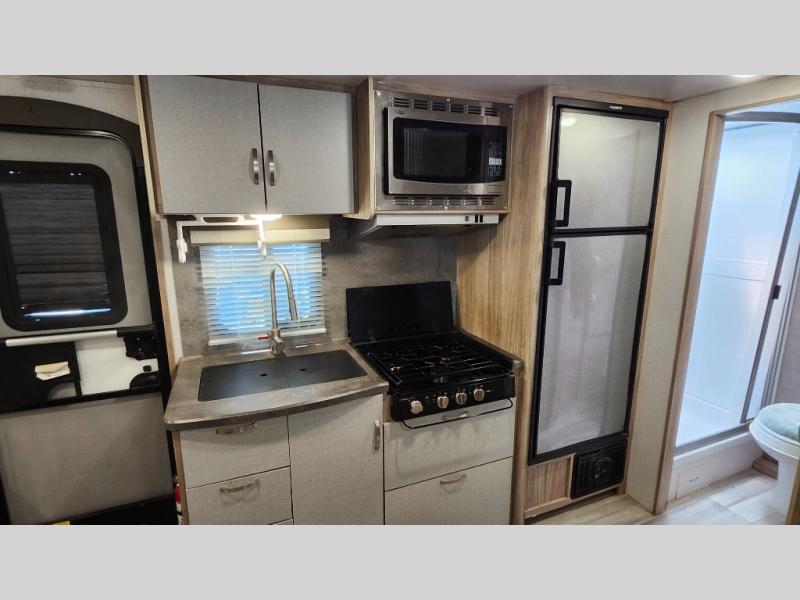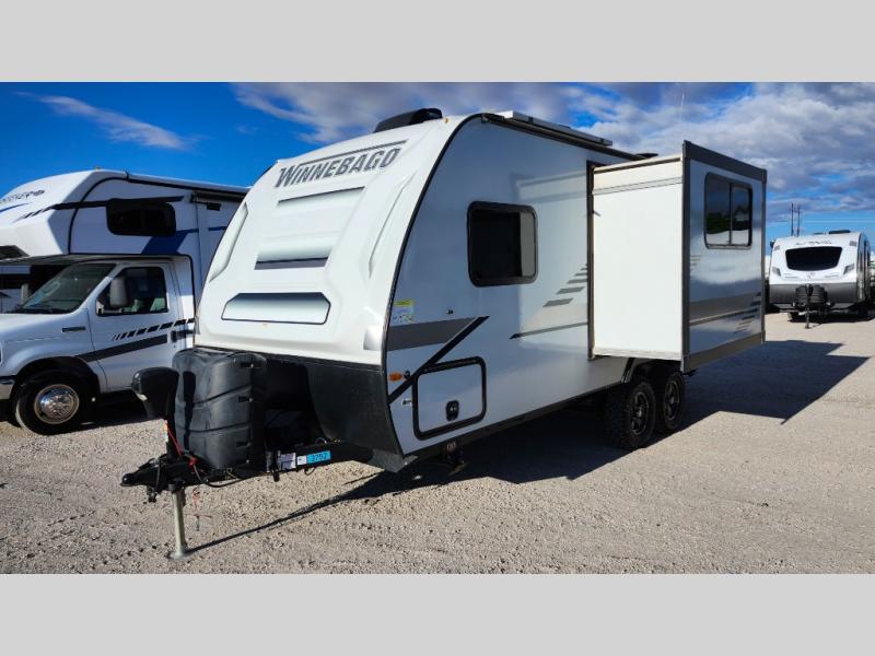 Start out on your boundless journey in one of these Winnebago Industries Towables Micro Minnie travel trailers! Towing is made simple with the 7' width to keep your Micro Minnie in your rear-view mirror. They don't lack in features either although they are compact in size. The spacious galley including a sink, refrigerator, two burner cooktop, and even a microwave oven allows you to cook without compromise. You will not only enjoy the entertainment found indoors with an LED TV, a JBL premium sound system and Aura Cube high performance mechless media center, but outdoors you will also enjoy the JBL premium speakers and a power awning with LED lighting. Each model also comes with flexible exterior storage to make packing quick and easy. What are you waiting for, come choose your model today!