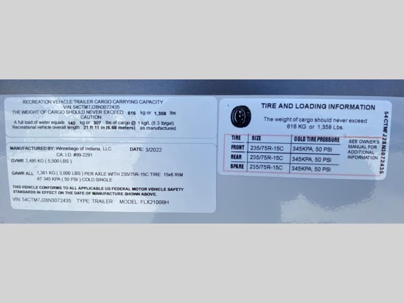 Used 2022 Winnebago Industries Towables Micro Minnie FLX 2100BH Travel Trailer