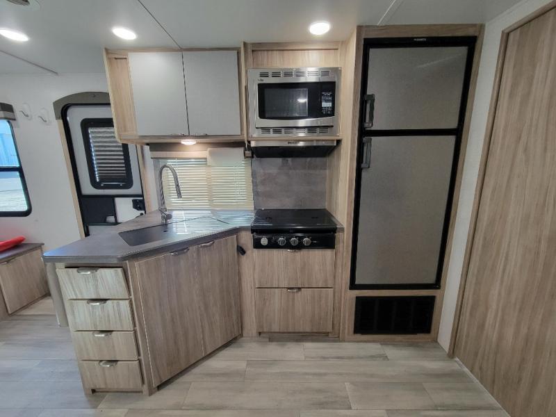 The Winnebago Minnie 2201MB combines efficient design with premium features, offering a lightweight travel trailer perfect for solo travelers, couples, or small families. It’s an excellent choice for those seeking comfort, modern amenities, and outdoor versatility on their adventures!
