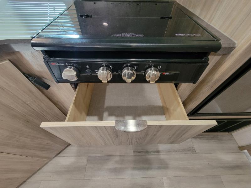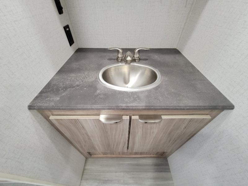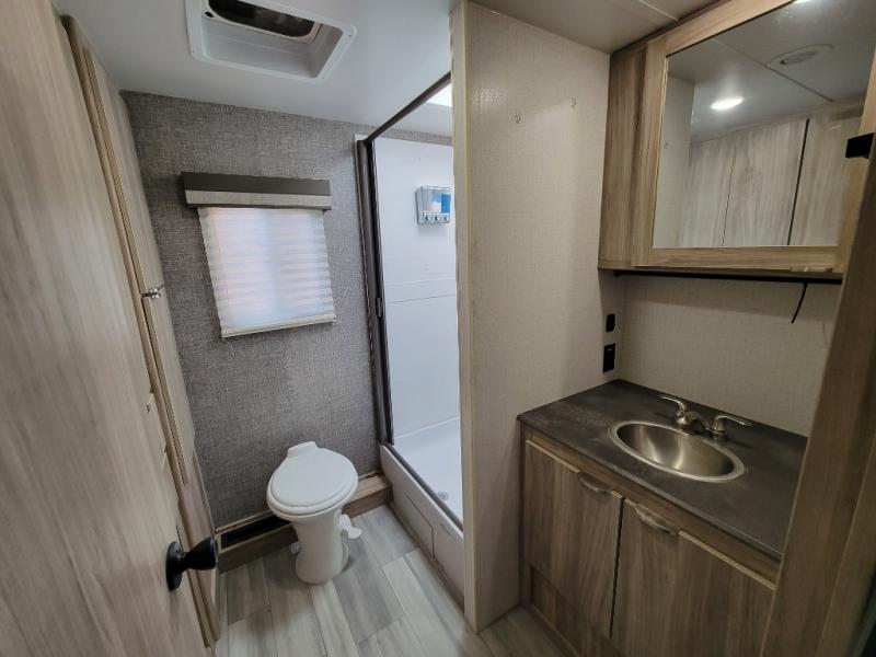 - A full-width bathroom with a spacious layout for added comfort while camping.