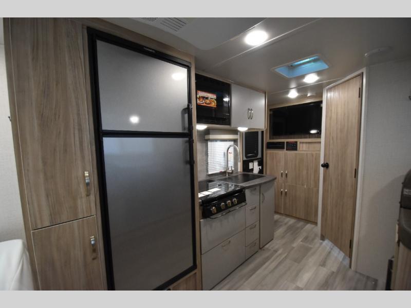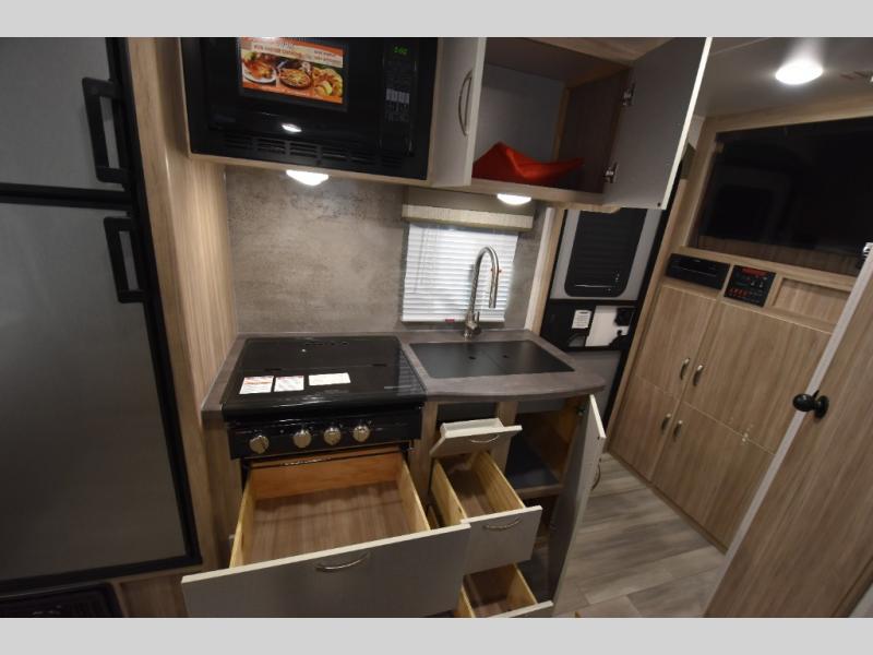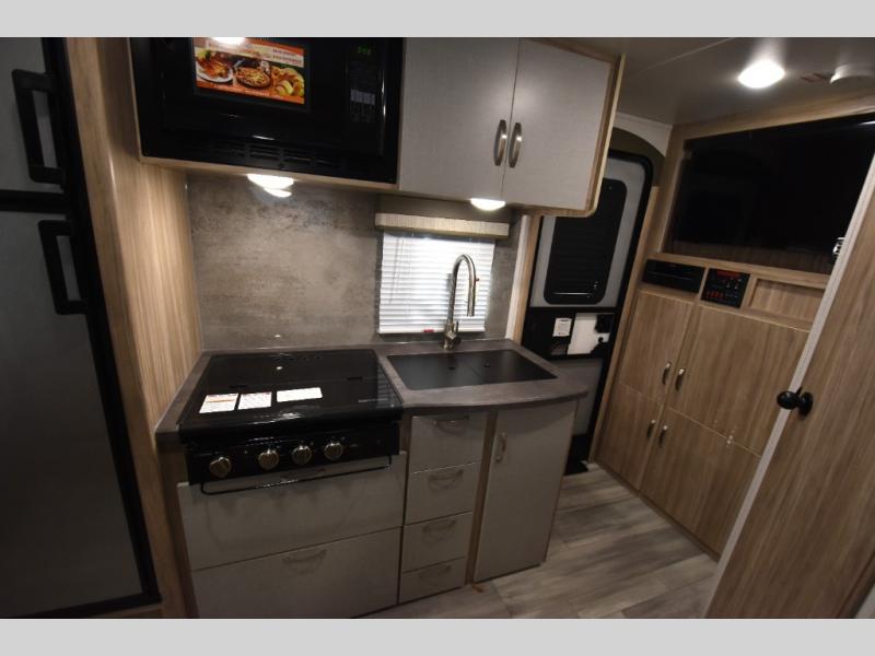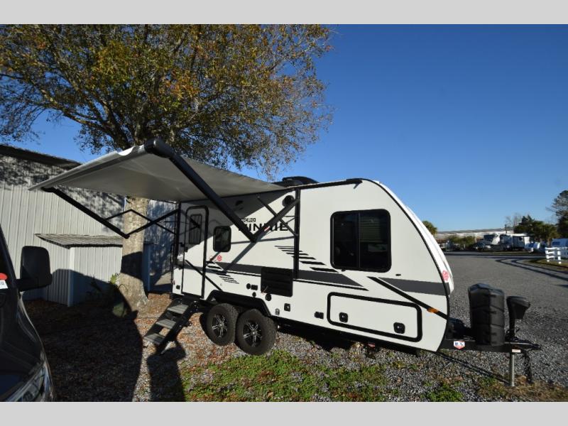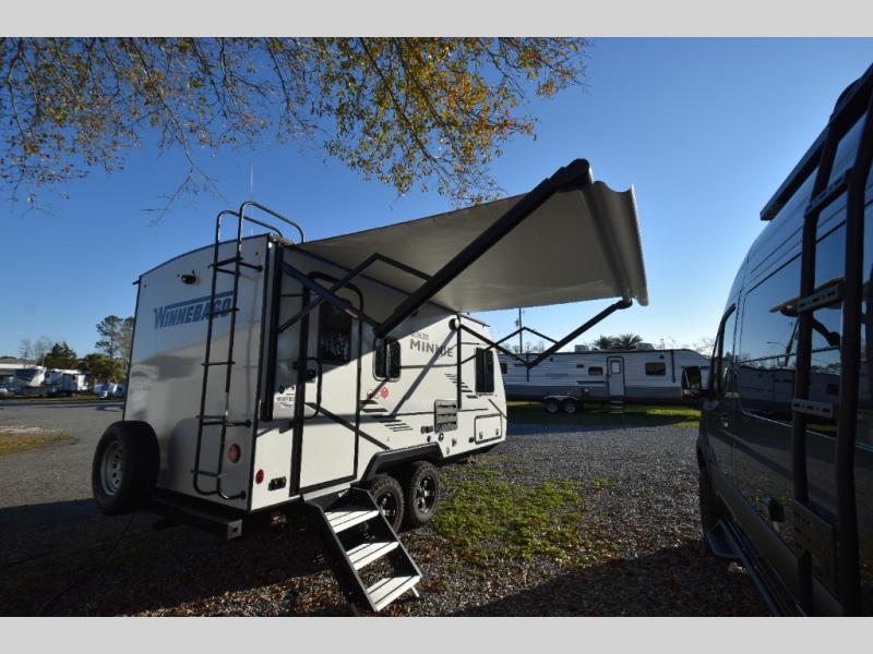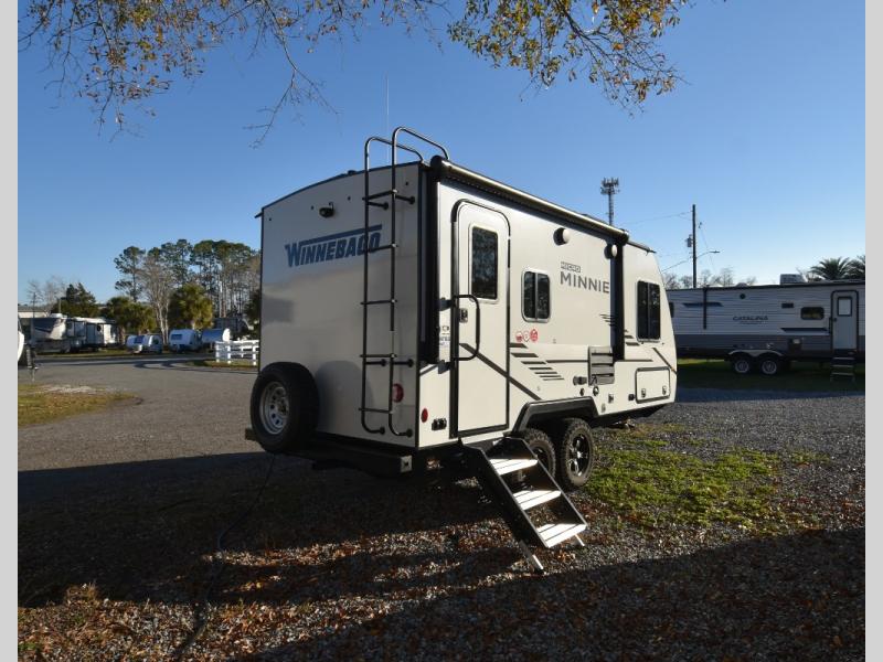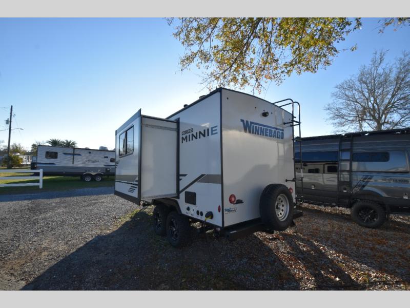 Start out on your boundless journey in one of these Winnebago Industries Towables Micro Minnie travel trailers! Towing is made simple with the 7' width to keep your Micro Minnie in your rear-view mirror. They don't lack in features either although they are compact in size. The spacious galley including a sink, refrigerator, two burner cooktop, and even a microwave oven allows you to cook without compromise. You will not only enjoy the entertainment found indoors with an LED TV, a JBL premium sound system and Aura Cube high performance mechless media center, but outdoors you will also enjoy the JBL premium speakers and a power awning with LED lighting. Each model also comes with flexible exterior storage to make packing quick and easy. What are you waiting for, come choose your model today!