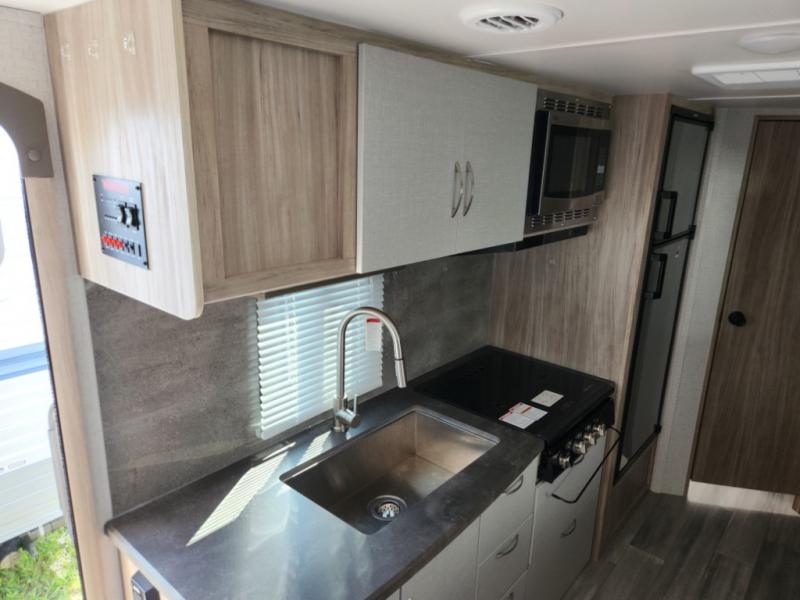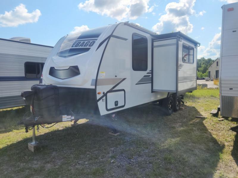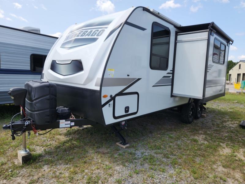 Start out on your boundless journey in one of these Winnebago Industries Towables Micro Minnie travel trailers! Towing is made simple with the 7' width to keep your Micro Minnie in your rear-view mirror. They don't lack in features either although they are compact in size. The spacious galley including a sink, refrigerator, two burner cooktop, and even a microwave oven allows you to cook without compromise. You will not only enjoy the entertainment found indoors with an LED TV, a JBL premium sound system and Aura Cube high performance mechless media center, but outdoors you will also enjoy the JBL premium speakers and a power awning with LED lighting. Each model also comes with flexible exterior storage to make packing quick and easy. What are you waiting for, come choose your model today!