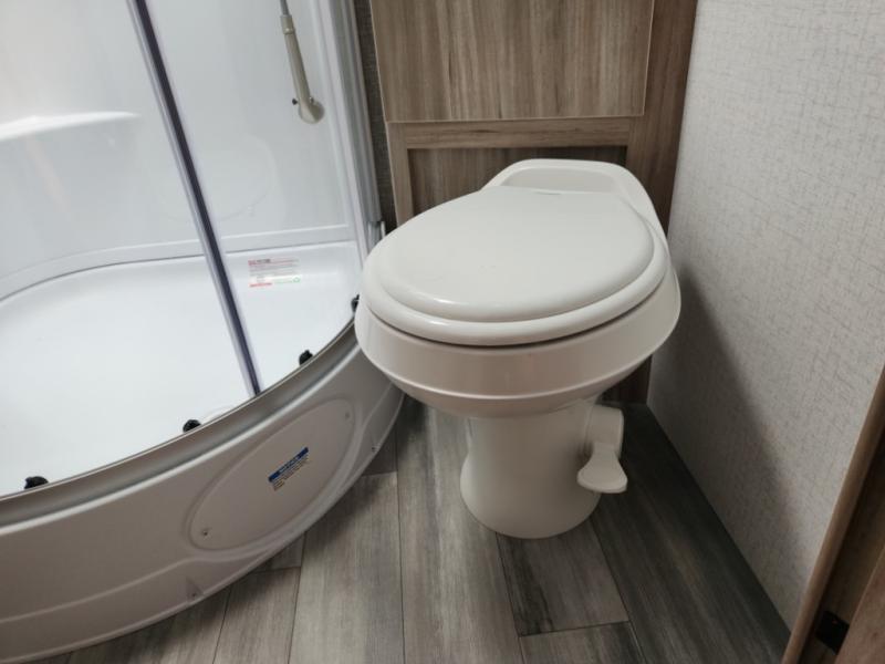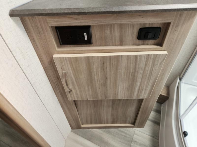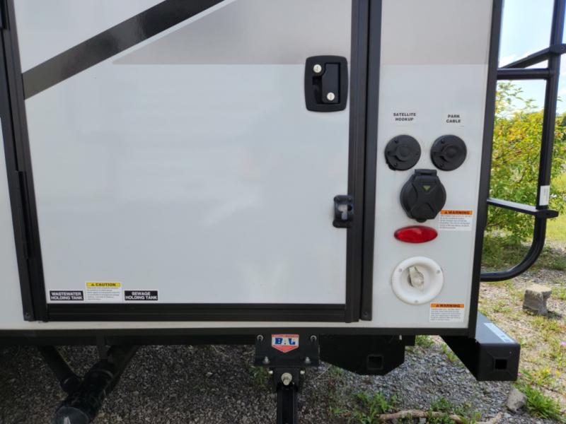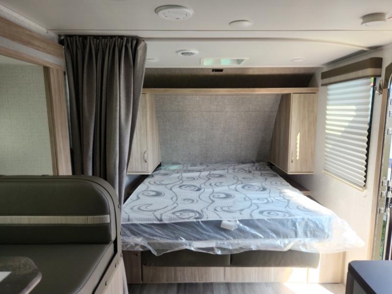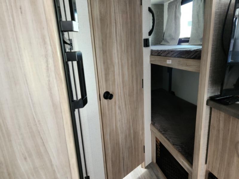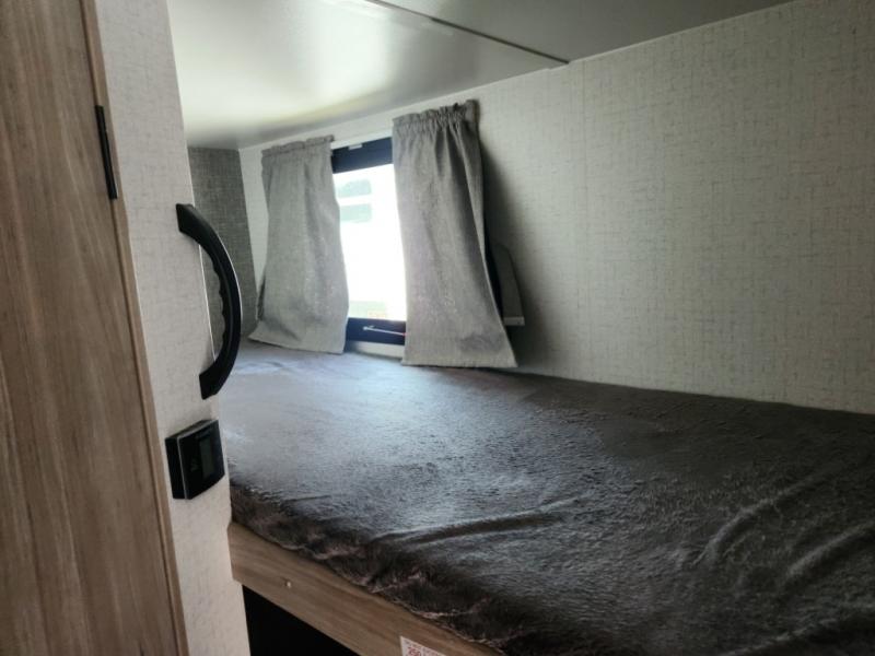 Load your kids into this travel trailer and experience a fun family getaway! The front Murphy bed offers versatile living by transforming into a 54" x 74" bed to sleep on at night and a sofa to sit on during the day. The 44" x 72" booth dinette slide is a great place to enjoy your meals at, play games as a family, and even transform into an extra sleeping space if your kids want a friend to tag along. The kids will love sleeping on the rear corner 28" x 72" bunk beds and having the rear corner bathroom right next to them. As if that wasn't enough, there is an exterior pack-n-play door, a power awning with LED lighting, and patio speakers to crank up the tunes!