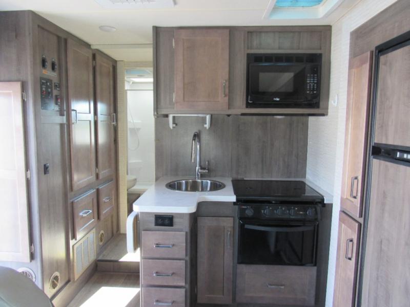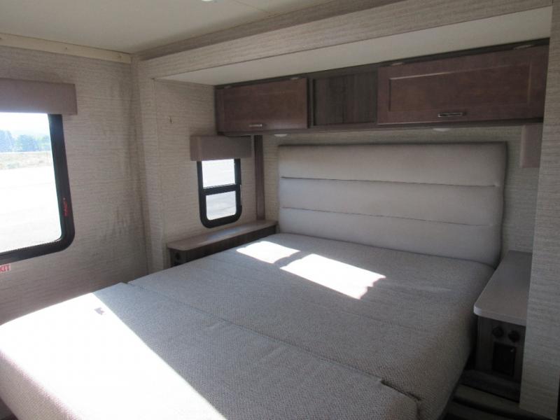 The Winnebago Minnie Winnie Class C gas motorhome is an exceptional choice for your upcoming travels! You will have a radio/rearview monitor system with integrated 8.95" multi-function touchscreen monitor and rear color camera, Bluetooth, Apple CarPlay, Android Auto and Sirius XM ready, and the cab seats have armrests, fixed lumbar support, and multi-adjustable slide/recline to keep you comfortable as you travel. There are quite a few safety features that will enhance your driving experience, like the hill start assist, adaptive cruise control, and lane departure warning. The front wraparound curtain will block out the sunlight from the windshield, and the exterior showcases a premium high-gloss fiberglass skin, a large lighted trunk storage compartment, a molded front cap, and a powered patio awning with LED lighting. The interior is also outfitted with an amplified digital HDTV antenna, systems monitor panel, and USB charger.