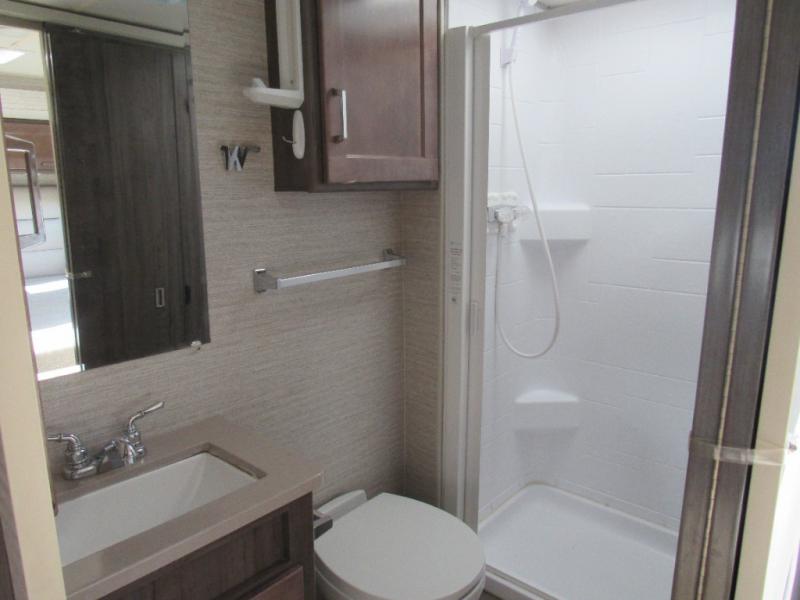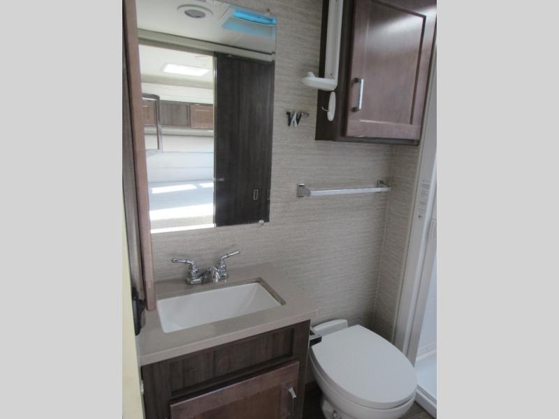 When you take this Minnie Winnie Class C gas motorhome out on the road, you'll be grateful for the many conveniences it provides, like a flip-up countertop extension in the kitchen, a 40" x 60" sofa bed that can serve multiple purposes, a 57" x 95" bunk over the cab that will add compact sleeping space, and a full bathroom that will allow you to keep good hygiene anywhere you are. The two slides give this coach extra interior space so that you don't feel cramped while you're indoors having fun, and the black-out roller shades will prevent prying eyes from seeing into your coach once it's dark.