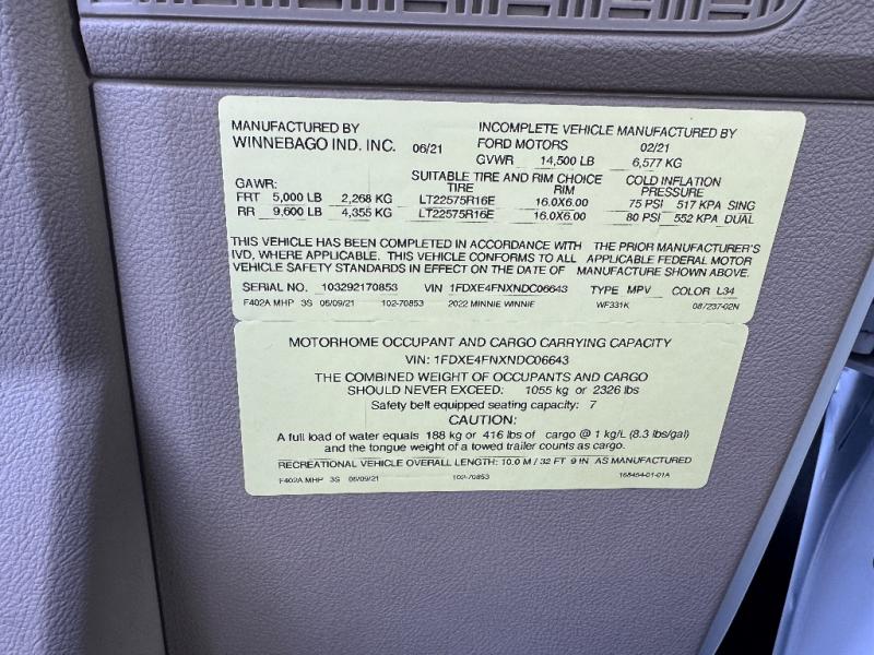 Used 2022 Winnebago Minnie Winnie 31K Motor Home Class C