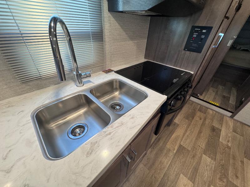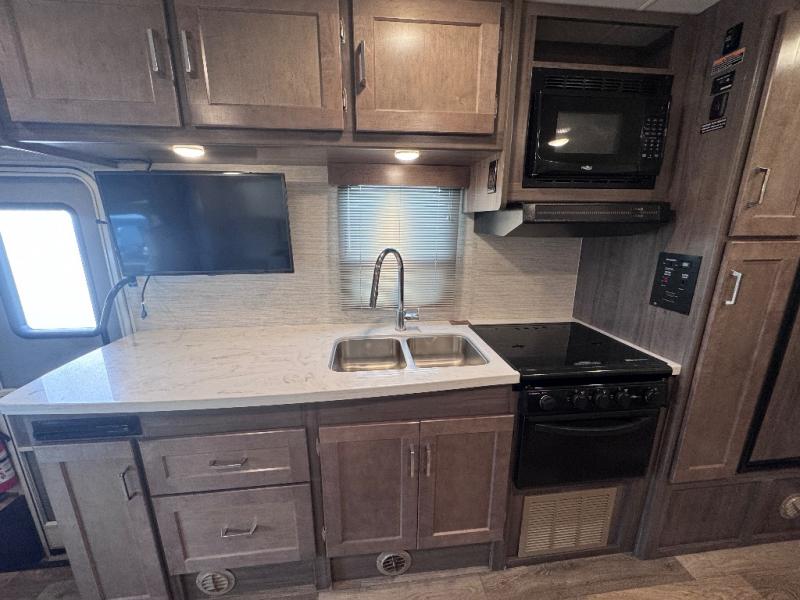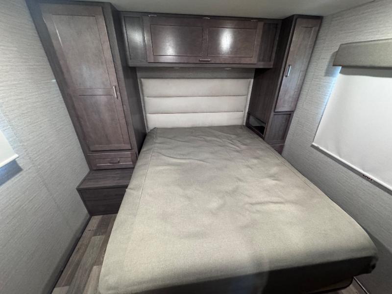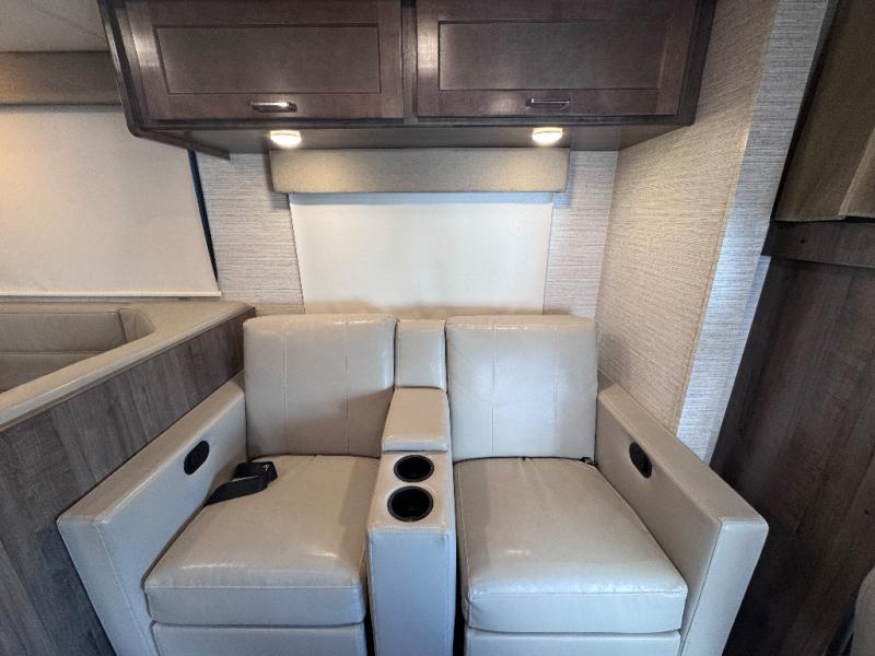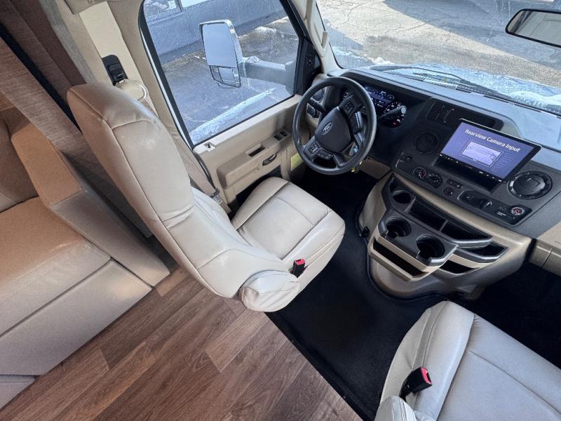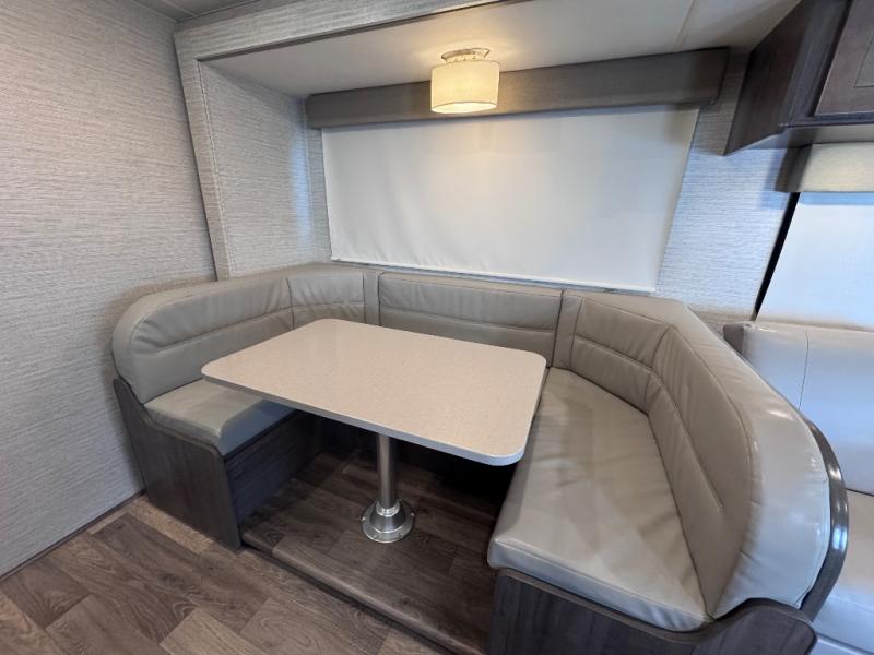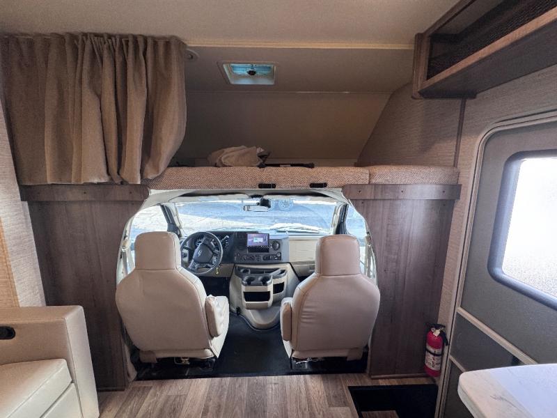 The Winnebago Minnie Winnie Class C gas motorhome is an exceptional choice for your upcoming travels! You will have a radio/rearview monitor system with integrated 8.95" multi-function touchscreen monitor and rear color camera, Bluetooth, Apple CarPlay, Android Auto and Sirius XM ready, and the cab seats have armrests, fixed lumbar support, and multi-adjustable slide/recline to keep you comfortable as you travel. There are quite a few safety features that will enhance your driving experience, like the hill start assist, adaptive cruise control, and lane departure warning. The front wraparound curtain will block out the sunlight from the windshield, and the exterior showcases a premium high-gloss fiberglass skin, a large lighted trunk storage compartment, a molded front cap, and a powered patio awning with LED lighting. The interior is also outfitted with an amplified digital HDTV antenna, systems monitor panel, and USB charger.