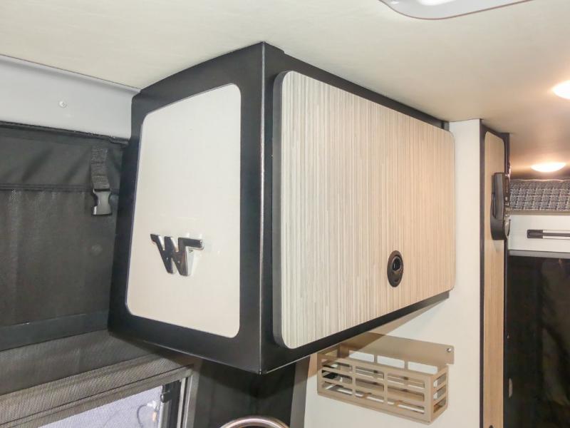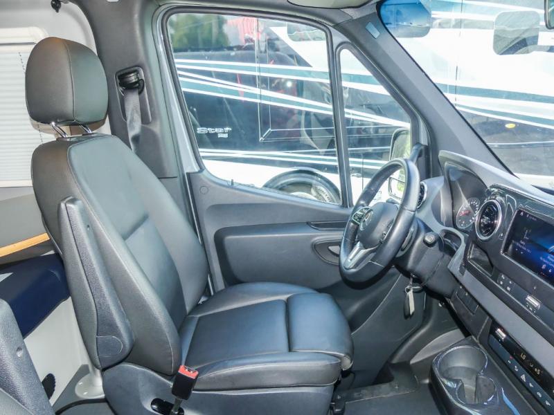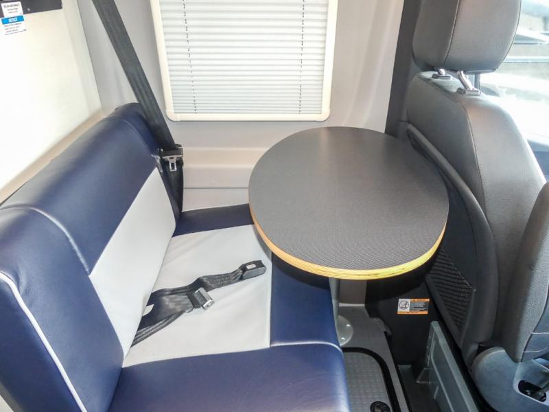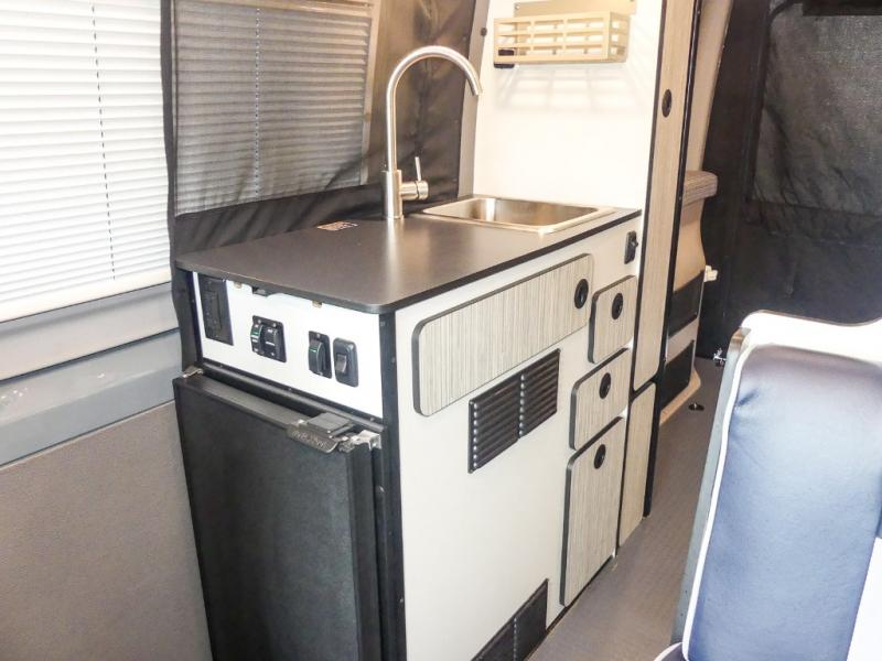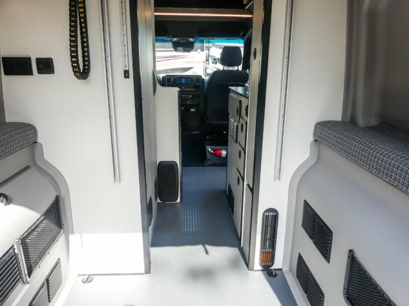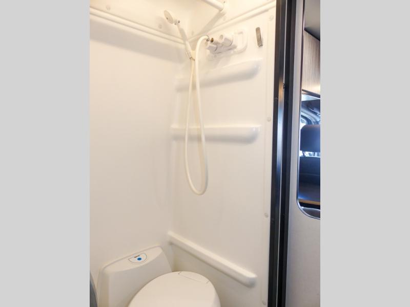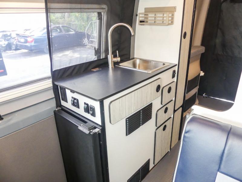 Looking for adventure yet not sure which road you will take? This camper van offers the outdoor enthusiast a way to venture the unknown with a 4-wheel drive motorhome. Once at your destination, you can easily set up the interior with the power lift bed in the rear, or relax under the power awning with LED lighting and Bluetooth control. There is even a fold-down outside table to dine outdoors if you want. You will find storage throughout including in the gear garage below the bed where you can store your hiking sticks and backpacks. The cook will have an induction cooktop, a stainless steel sink, and a removable counter extension for more prep space. There is seating on the driver and passengers seats that swivel to face the bench seat with a removable pedestal table, and there is a wet bath to keep everyone refreshed.