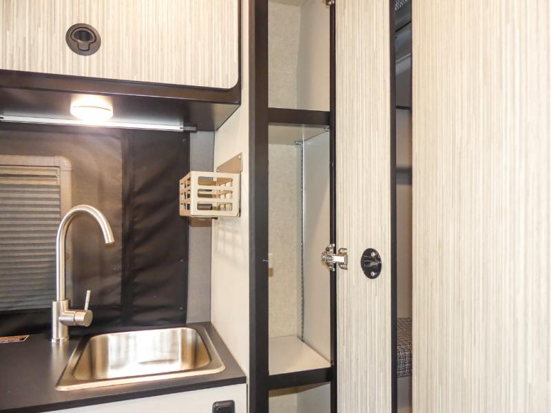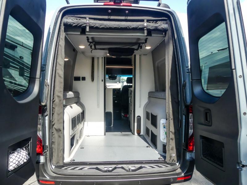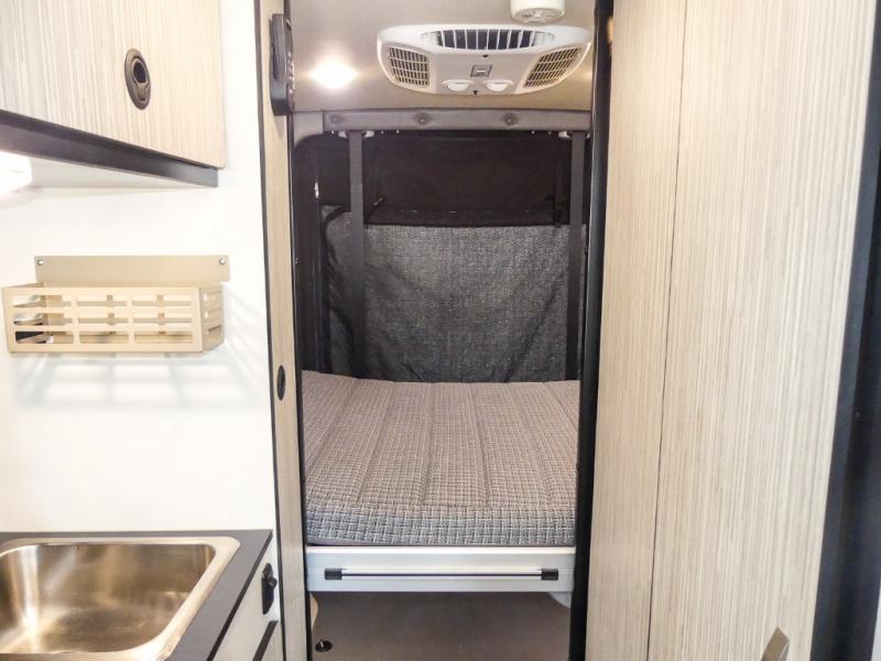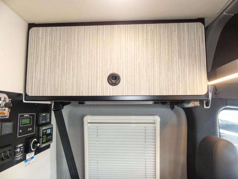 The Revel Class B diesel motorhome allows you to venture off-road thanks to the On-Demand 4WD with Hi/Lo range, electronic stability and traction control, plus 4-wheel ABS brakes. The two 125-amp-hour lithium iron phosphate (LiFePO4) batteries are charged via solar, shorepower or the dedicated second alternator, plus you have a 2,000-watt inverter/charger. The exterior offers a side screen door with a magnetic closure system, a rear screen door with a blackout panel, and a luggage rack. The interior provides a laminate countertop in the galley, full-extension drawers, USB charging points, heavy-duty vinyl flooring throughout for easy cleaning, and RAM Tough-Track mounts to help secure your belongings. Start treating roads like suggestions, choose this Revel today!