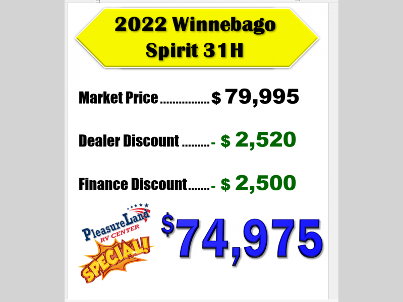 Used 2022 Winnebago Spirit 31H Motor Home Class C