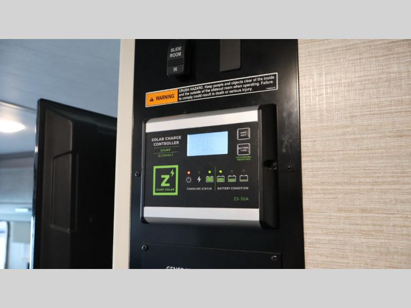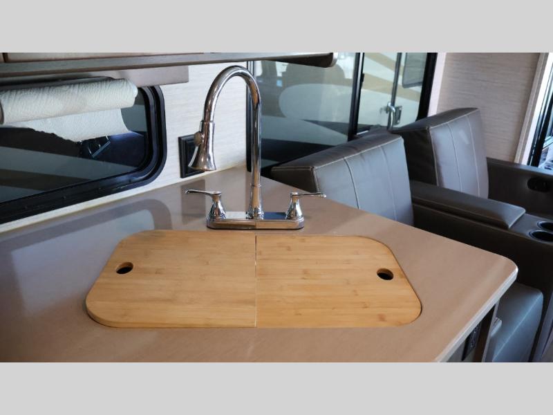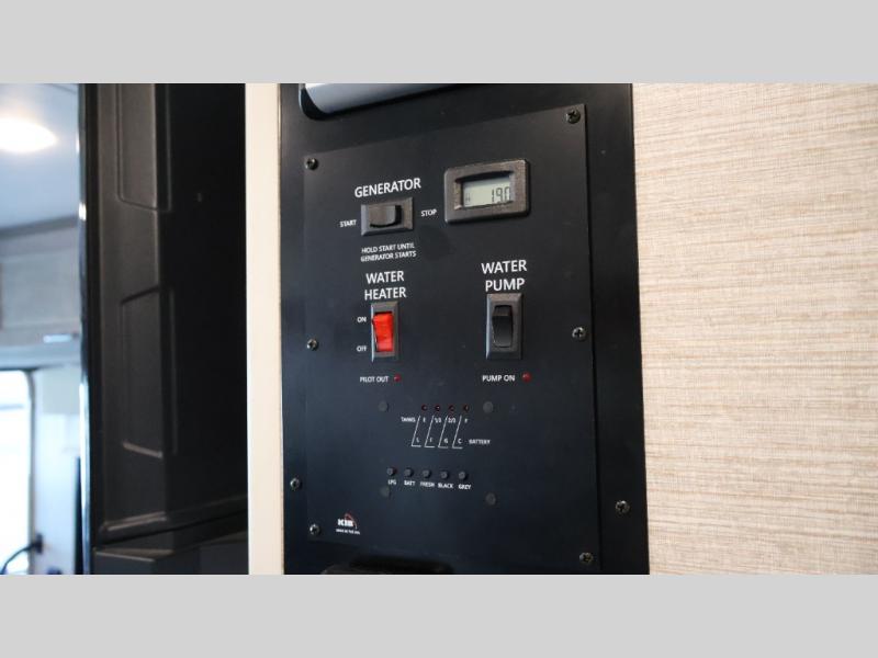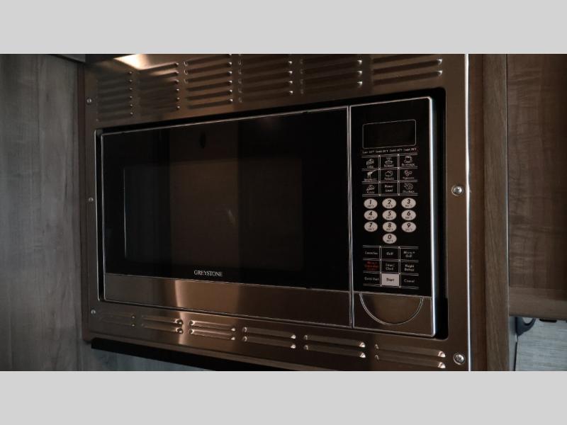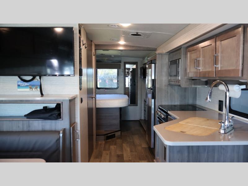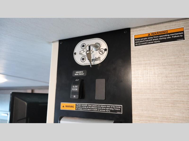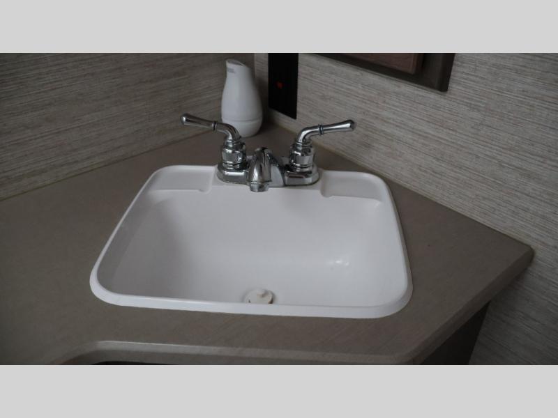 Traveling to see your favorite team or looking for the best views while hanging outside this RV, you can enjoy the exterior as much as the interior. The included Tailgate package provides a refrigerator, a three-drawer cabinet, LED lights, Quick-Connect LP house, a steel sink, a wall mounted bottle opener, a garbage bag holder, and a paper towel holder. And the exterior 39" HDTV plus powered patio awning with LED lighting will keep the party outside late! Inside you can sleep in the rear bedroom which includes tandem sliding doors for privacy, and the full bathroom allows you to stay refreshed all day. You can make all your meals with the appliances provided, and dine at the dinette with Hi-Lo table and while on the sofa/bed. The furniture also doubles as extra sleeping space, and you might like to add the optional StudioLoft bed.