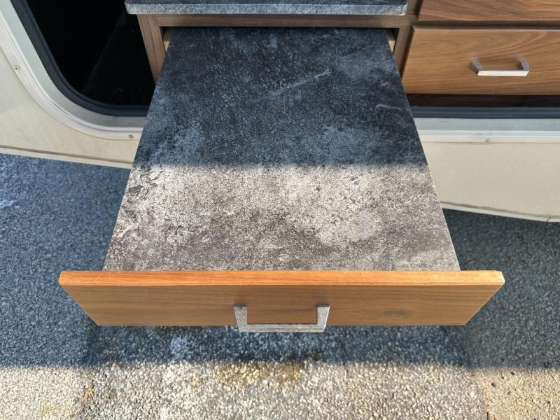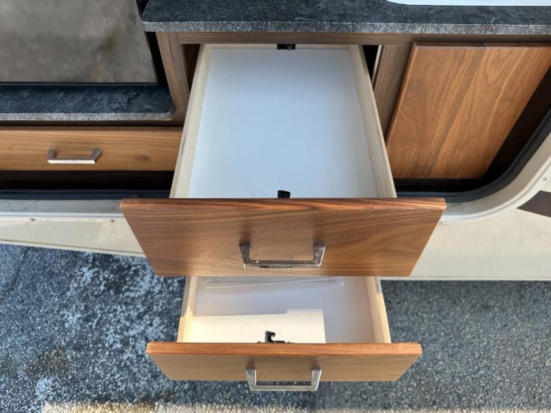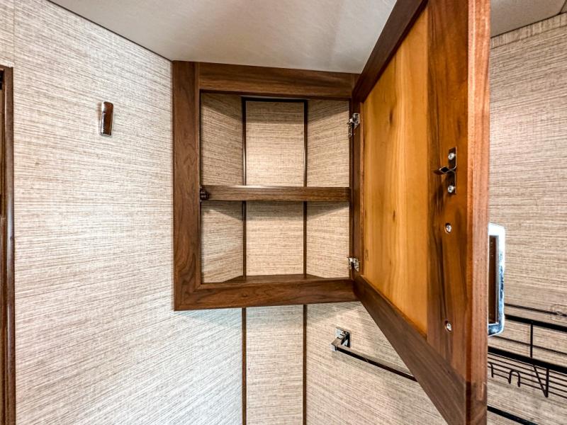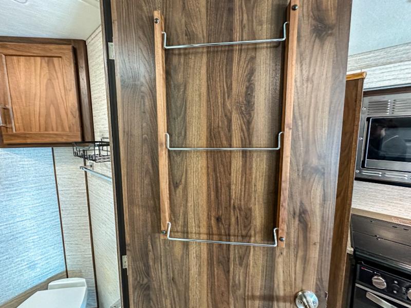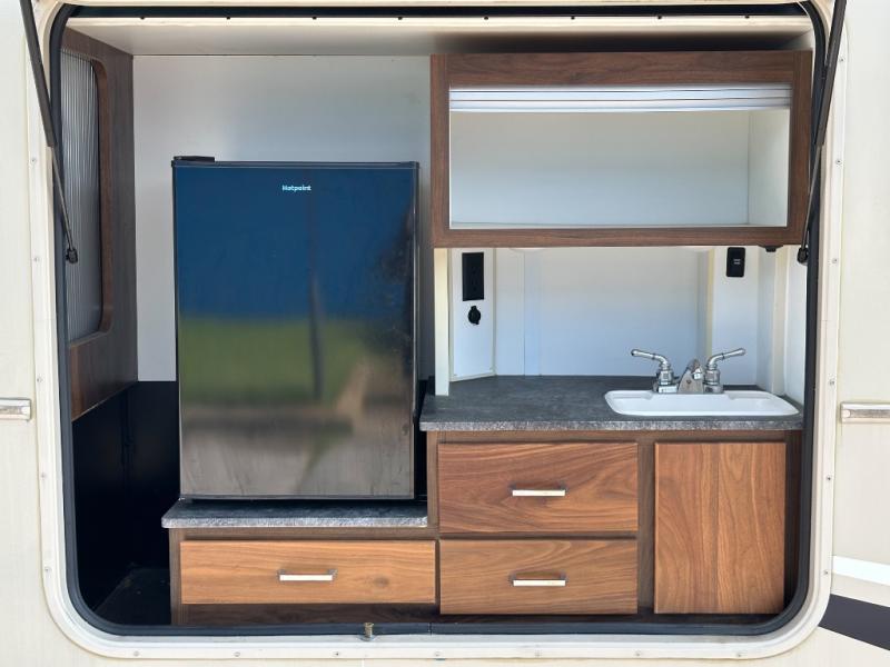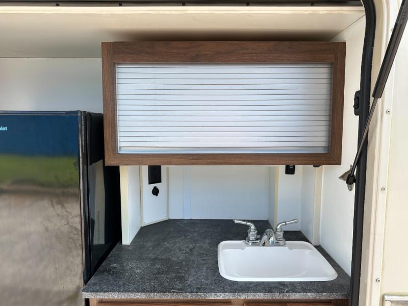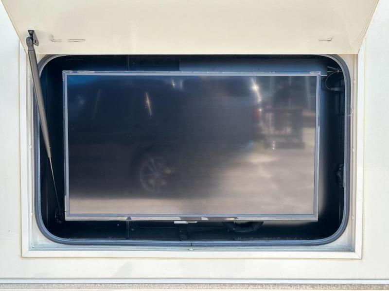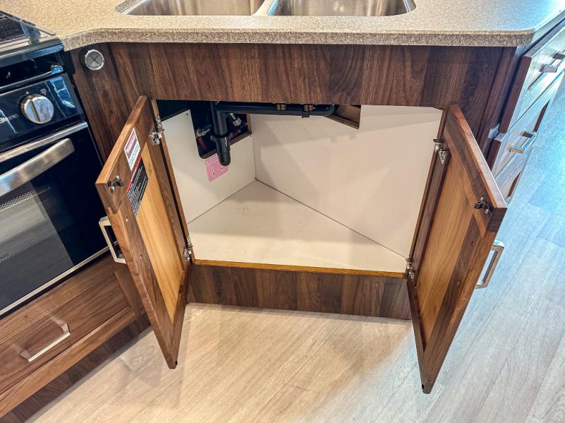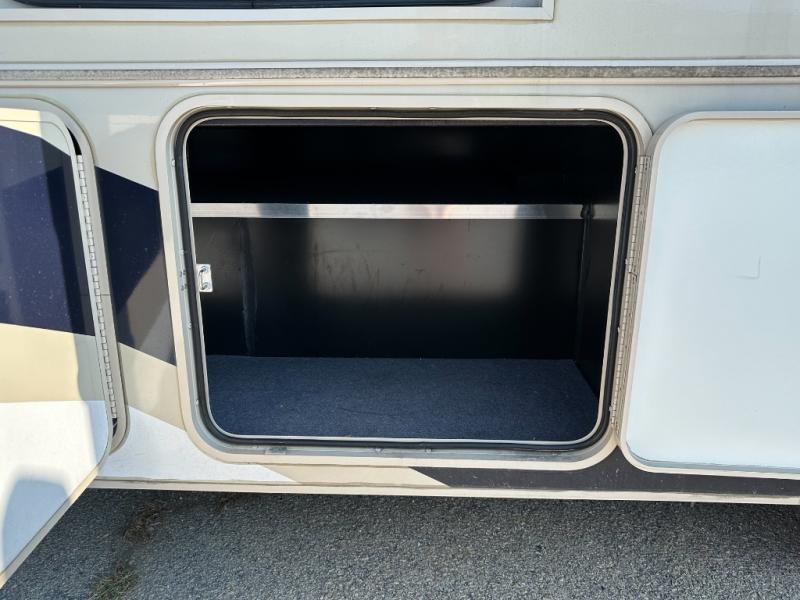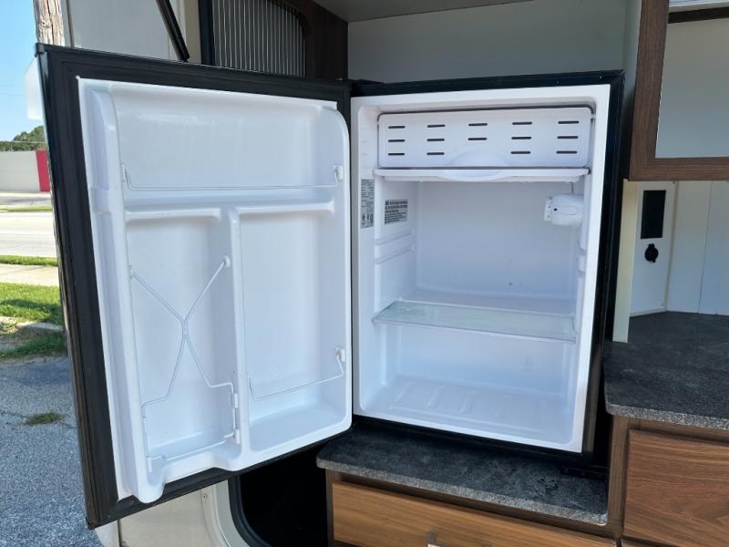 Tailgating in this RV is super fun with the exterior 32" HDTV, the powered patio awning with LED lighting, plus the included Tailgate package which provides a refrigerator, a three-drawer cabinet, LED lights, Quick-Connect LP house, a steel sink, a wall mounted bottle opener, a garbage bag holder, and a paper towel holder. When you want to carry the party inside, there is a sofa/bed, a dinette with Hi-Lo table, and the captain's seats that swivel giving you more seating to visit. When it's time for bed, the the mid-coach bunk beds, and the optional StudioLoft bed will provide sleeping space as well as the furniture. You will find storage throughout in overhead cabinets, in the bedroom wardrobe, and the exterior compartments.